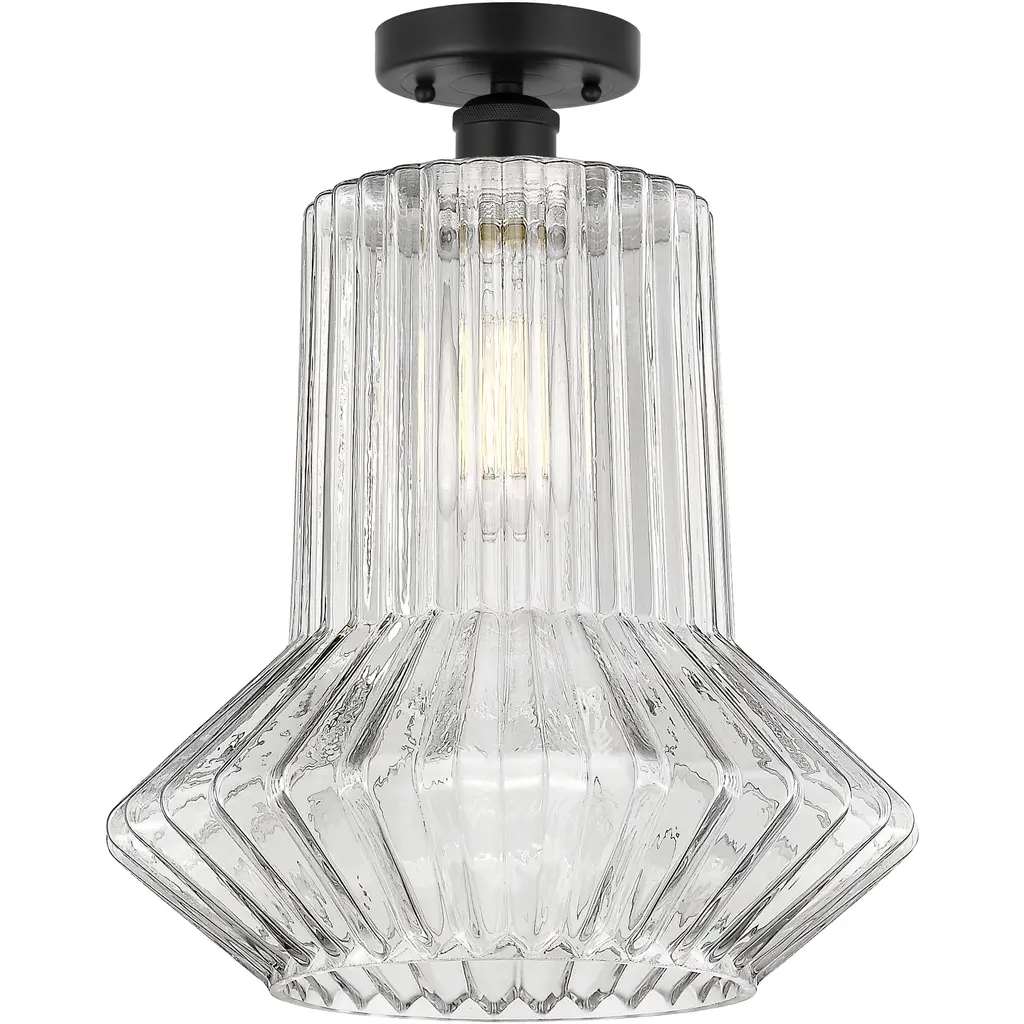 Springwater - 1 Light 12" Semi-Flush Mount - Incandescent Bulb - Polished Chrome Finish - Clear Spiral Fluted Shade