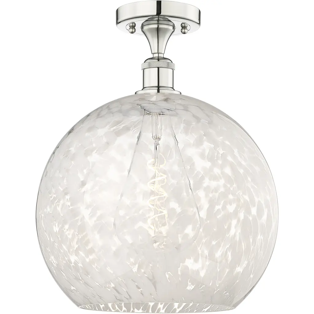 Edison White Mouchette 1 Light 12 Inch Polished Chrome Semi-Flush Mount Ceiling Light