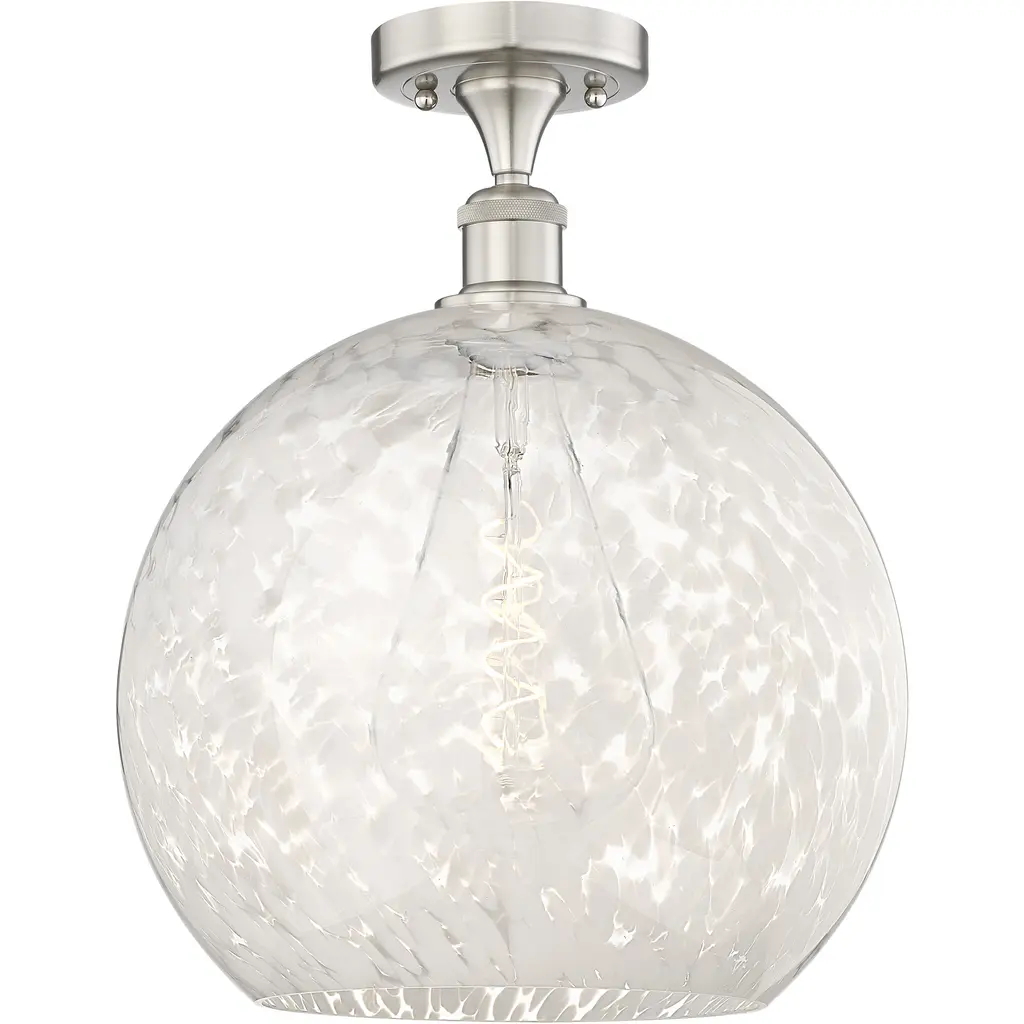 Edison White Mouchette 1 Light 13.75 Inch Oil Rubbed Bronze Semi-Flush Mount Ceiling Light