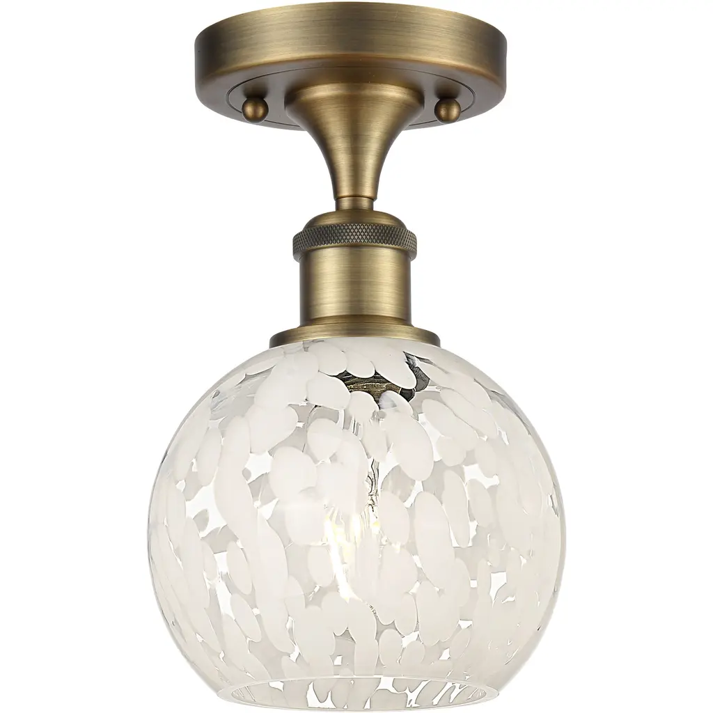 Edison White Mouchette 1 Light 6 Inch Antique Brass Semi-Flush Mount Ceiling Light