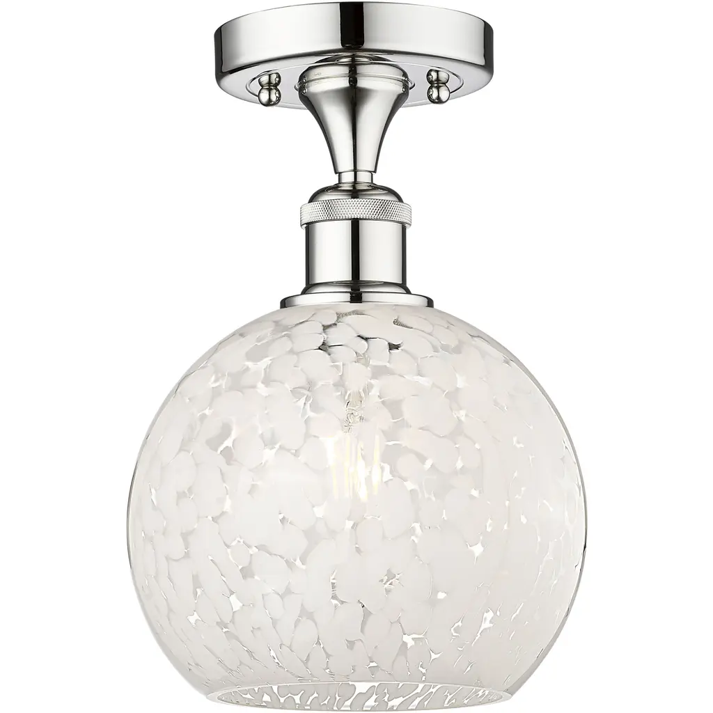 Edison White Mouchette 1 Light 6 Inch Brushed Satin Nickel Semi-Flush Mount Ceiling Light