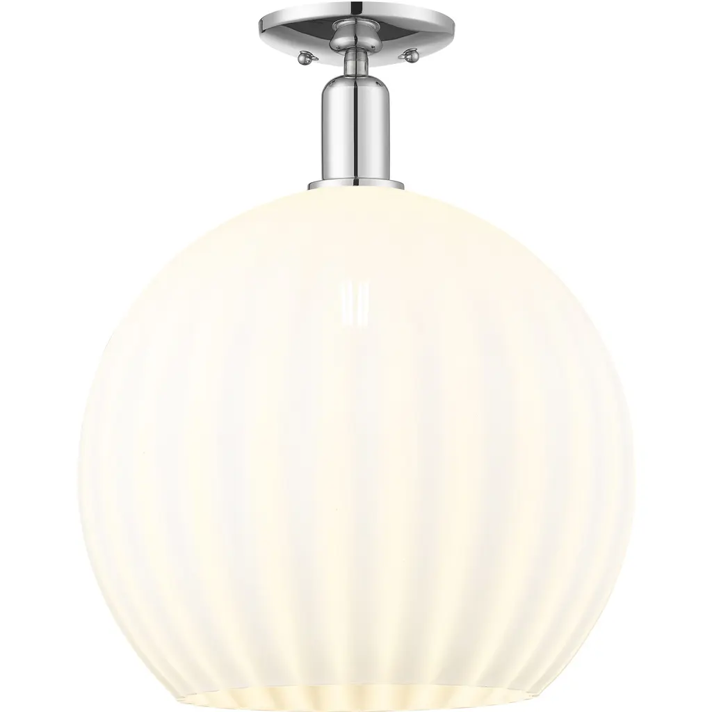Edison White Venetian 1 Light 8 Inch Polished Chrome Semi-Flush Mount Ceiling Light