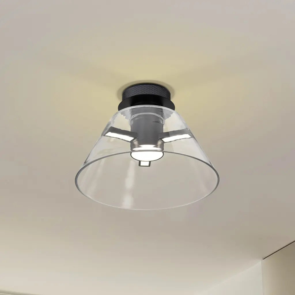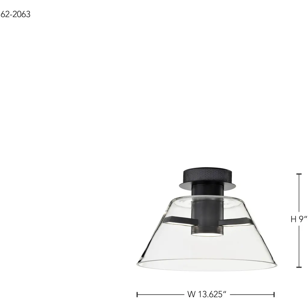 Edmond - 14 Inch LED Semi Flush - Matte Black with Clear Glass