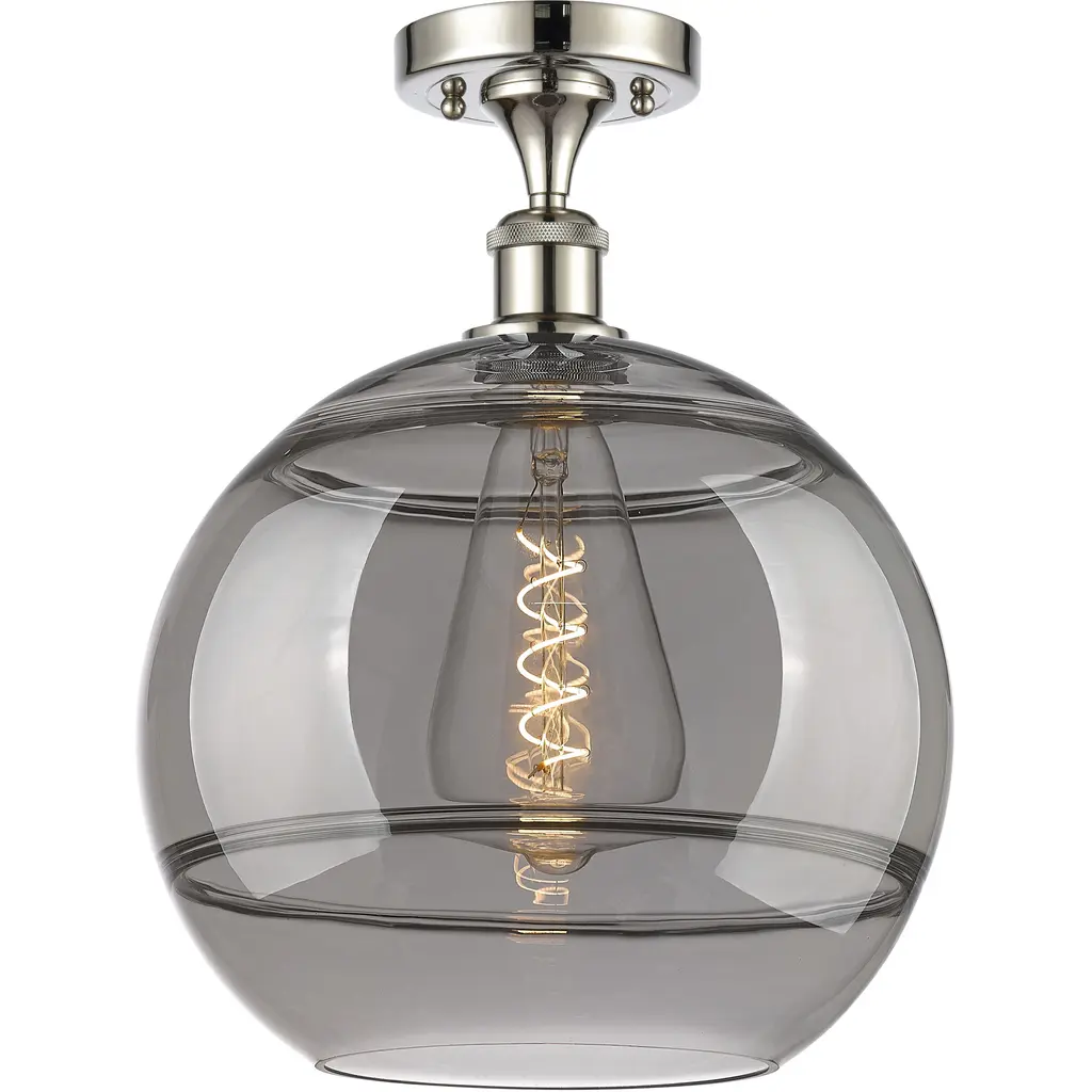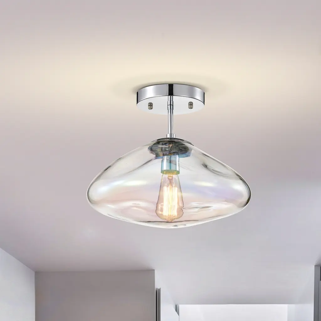 Einar Moulded Glass Shade Semi-Flushmount Ceiling Lamp - Chrome-Clear