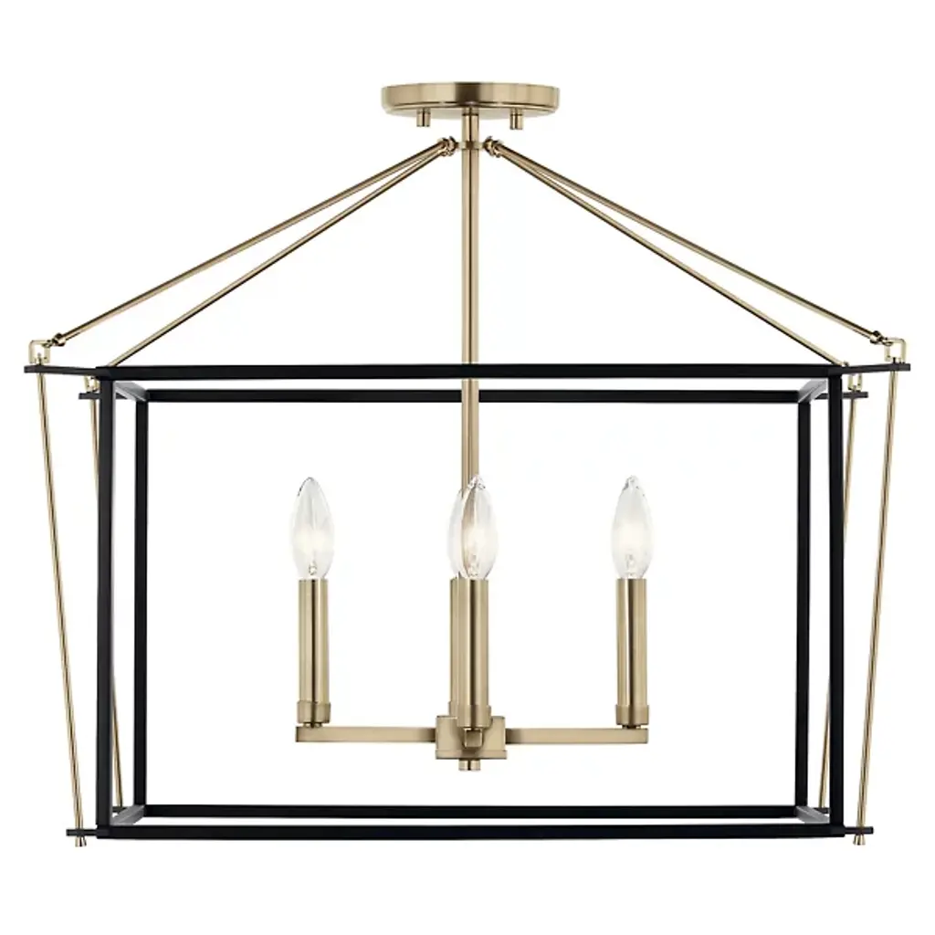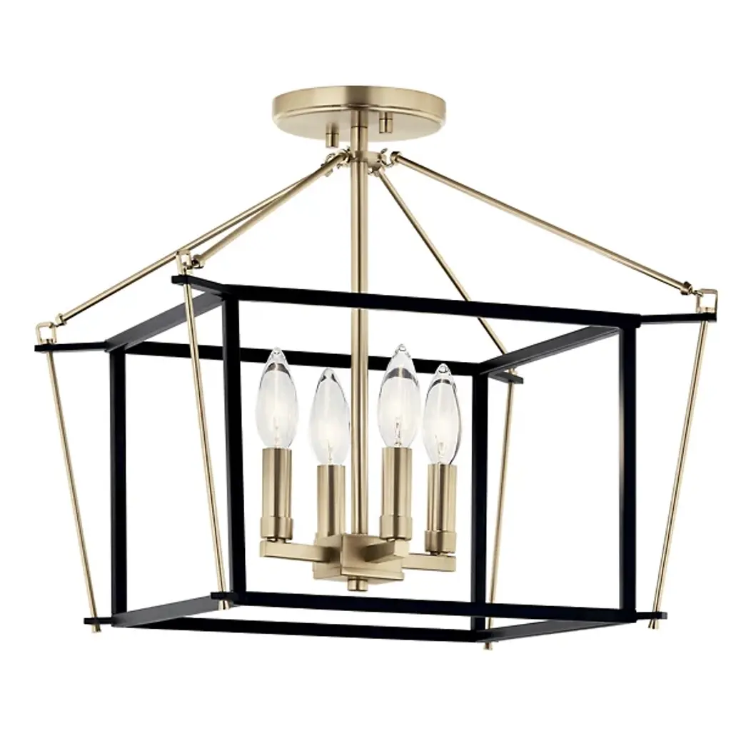 Discover the Eisley Semi-Flushmount by Kichler, an embodiment of minimalist, modern allure with its open-framed body design. Delicately intertwining contrasting finishes are connected by subtle hook and eye details at each corner, exuding understated elegance. Crafted without glass, this semi-flushmount imparts a sense of weightlessness, adding an ethereal touch to any space. Illuminate your space with Eisley, a luminary that seamlessly blends contemporary design with timeless sophistication, casting a warm and captivating glow.