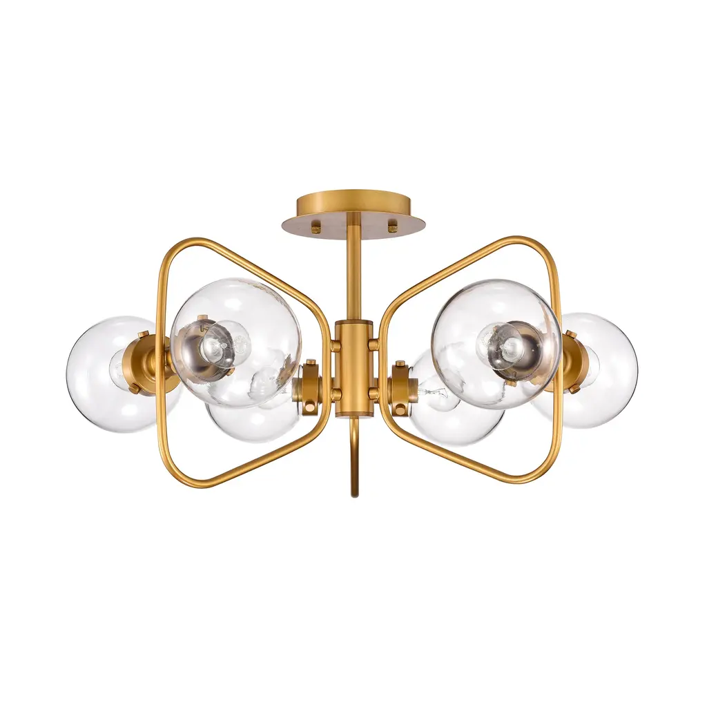 Elaina 6-Light Geometric Metal Frames Semi-Flush Mount With Glass Globe Shades - Matte Gold