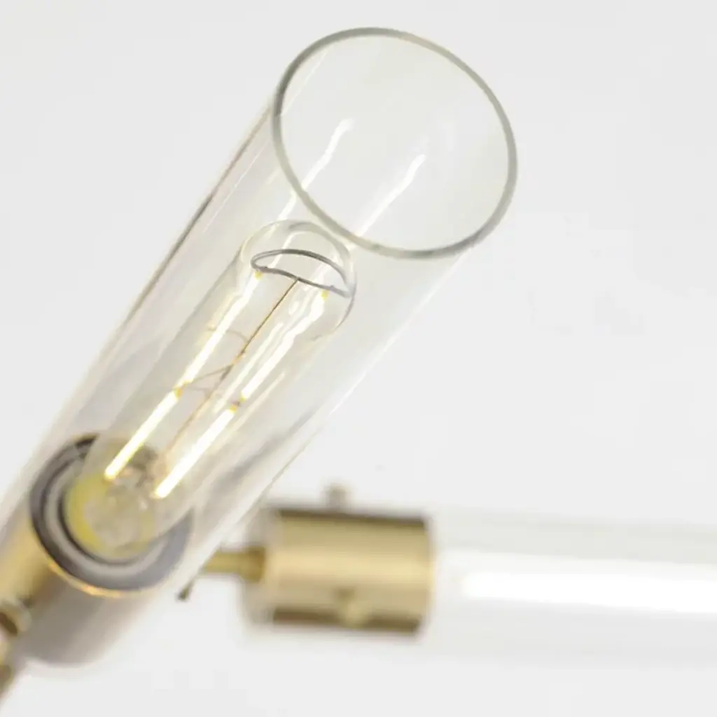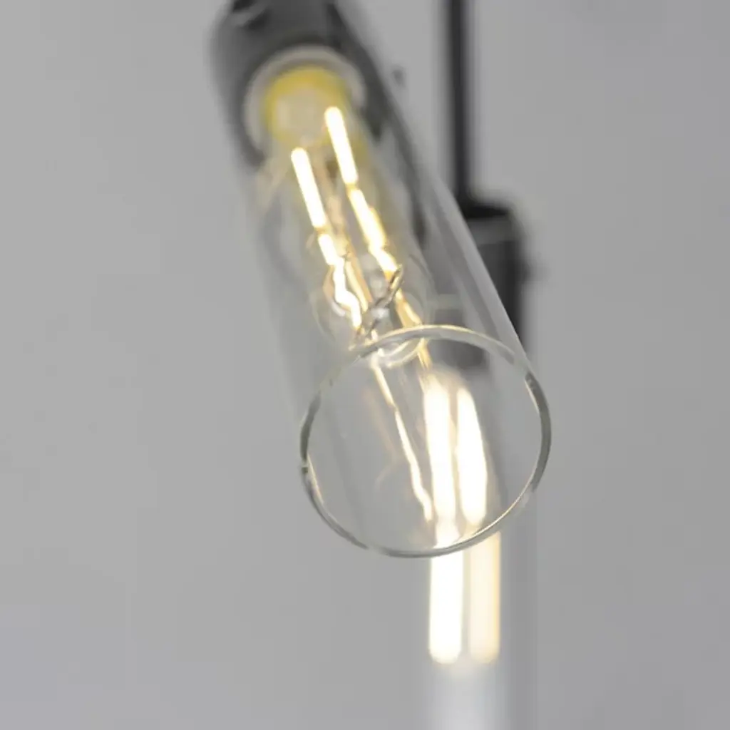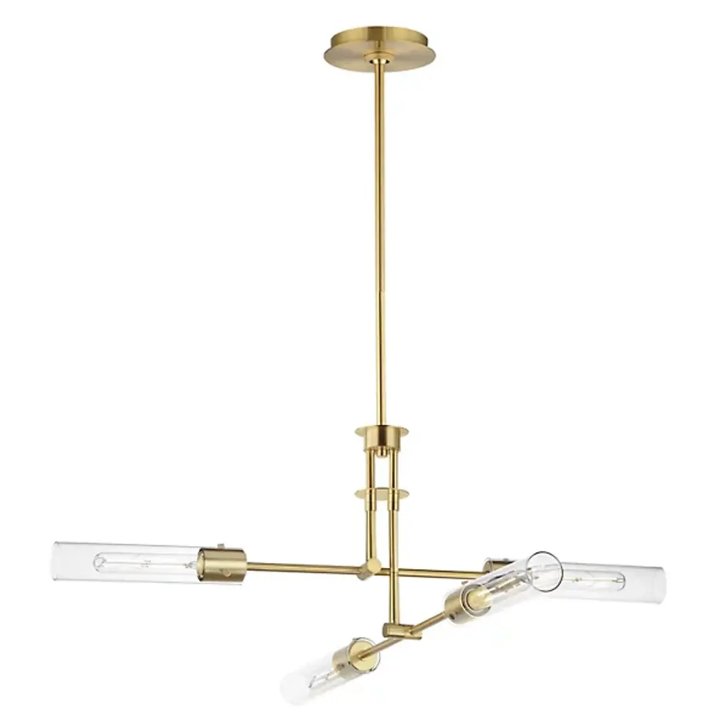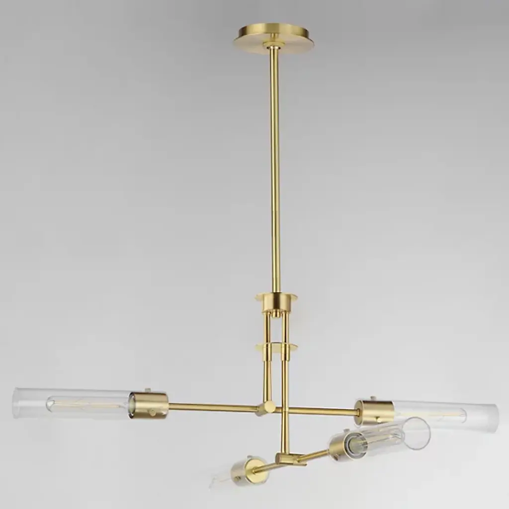 The Equilibrium Pendant / Semi-Flushmount from Maxim Lighting moves up or down and angles to create a silhouette and light spread that’s perfectly tailored. The piece makes a first impression through its modern antique style. It sports a downrod suspension that can be extended as a pendant or collapsed for a ceiling-hugging semi-flushmount. Intricate metal hardware follows below with a pair of arms that tilt to one’s liking. Clear glass cylinders and tubular bulbs extend from each side like a crisp saber. Once on, the piece generates a far-reaching glow and beautiful highlights.
