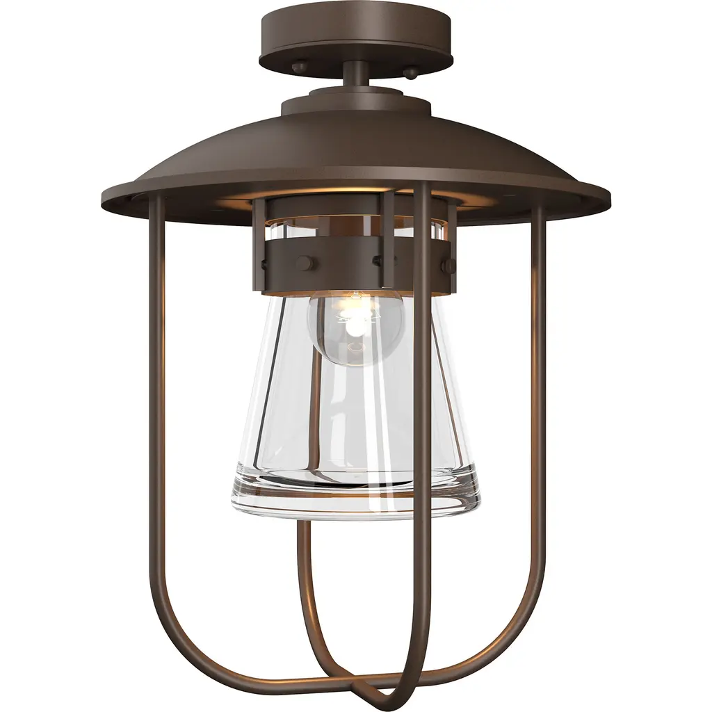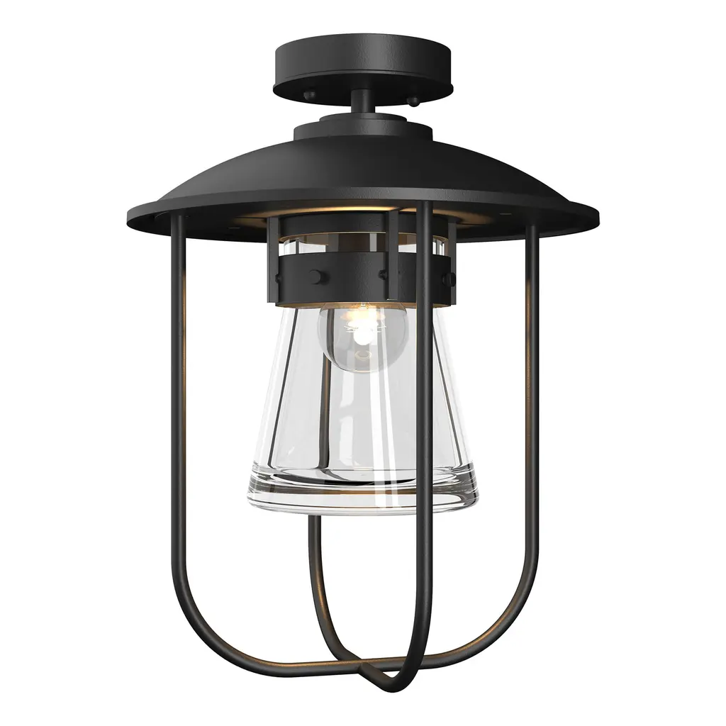 Beautifully modern, yet classic in design, the Erlenmeyer Outdoor Semi-Flushmount from Hubbardton Forge is a wonderful way to light any outdoor space. Reminiscent of a lighthouse, this fixture features a thick glass shade with a metal cage surrounding it. With a UL Damp rating and a robust coastal finish, this light is made to resist harsh climates. Each piece is handcrafted to order and made in the US.
