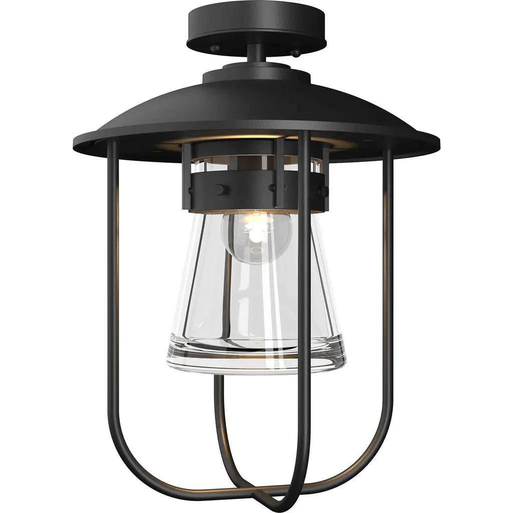 Beautifully modern, yet classic in design, the Erlenmeyer Outdoor Semi-Flushmount from Hubbardton Forge is a wonderful way to light any outdoor space. Reminiscent of a lighthouse, this fixture features a thick glass shade with a metal cage surrounding it. With a UL Damp rating and a robust coastal finish, this light is made to resist harsh climates. Each piece is handcrafted to order and made in the US.