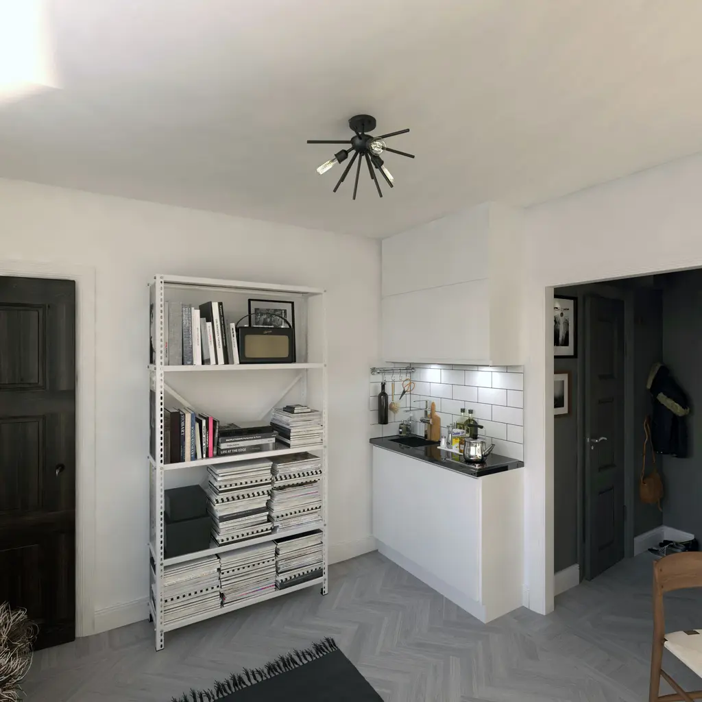 Mid-century meets modern with this timeless and uniquely artistic sputnik light fixture from the Estelle ceiling light collection. This semi flush ceiling light will add elegance and drama to your dining room, living room, foyer, kitchen, hallway, or bedroom. The perfectly balanced open design concept modernizes this light for today's on-trend decors while providing maximum lighting. Also available in multiple configurations, sizes, and finishes that will complement any space.