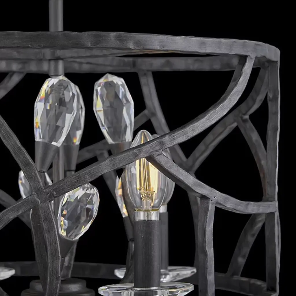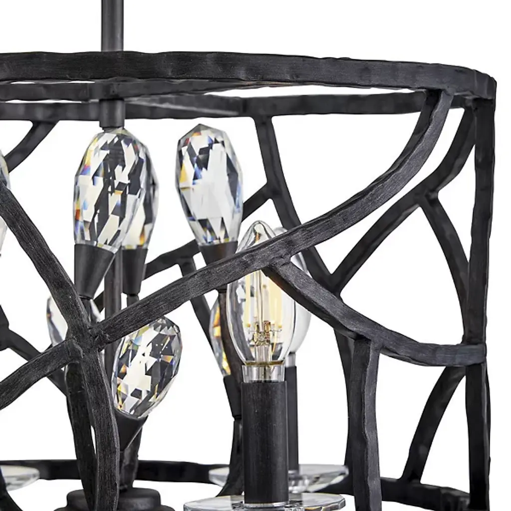 Divinely decadent in detail and beautifully arranged. The Eve Semi-Flushmount / Pendant is a luxurious piece of design from Fredrick Ramond for Hinkley Lighting. Inspired by nature, the entire bodice has been composed of a series of woven branches and stems with sparkling crystal buds at the tips of some. The exposed candelabra bases within the center of the flushmount will allow the champagne gold finish and crystal filigree to glisten enchantingly. It’s a perfect way to elevate an interior with an enlightened design.