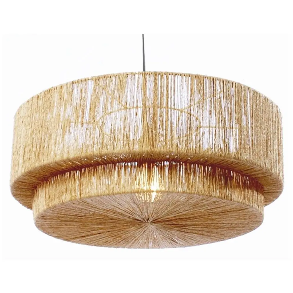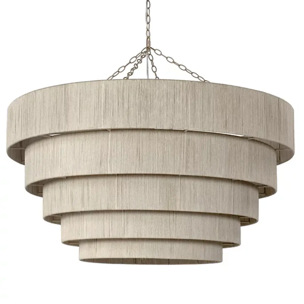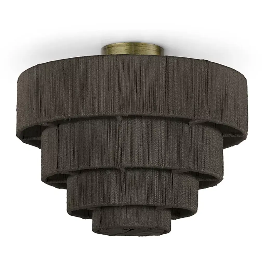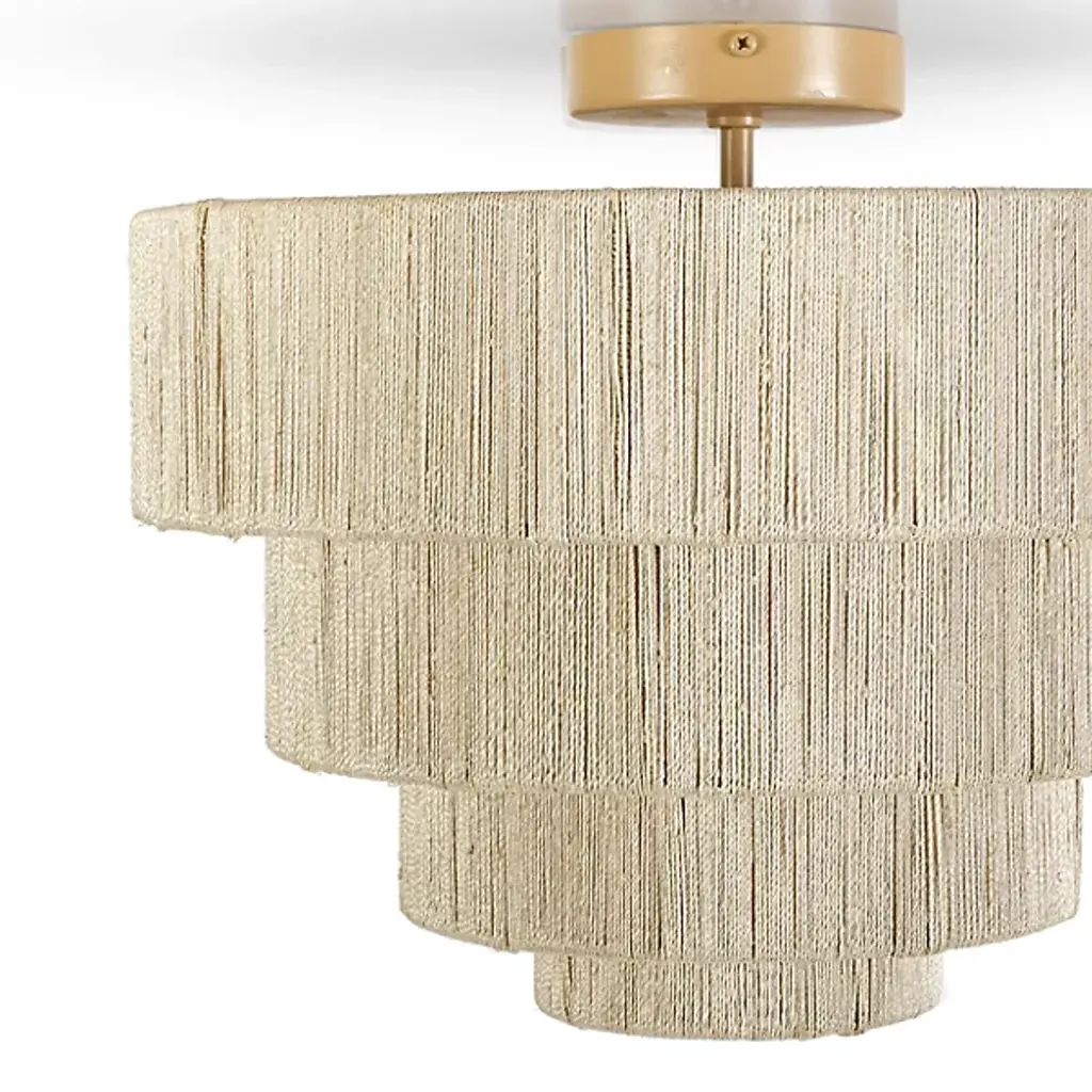 Get lost in the detail of the intricate materials and fine craftsmanship with the tightly sequenced Everly Semi Flushmount from Palecek. This piece represents Palecek's love of organic materials. It sits tight against the ceiling with a short canopy to maximize overhead space. Ring metal frames descend and taper in size, creating an attractive sense of depth. The rings transform into charming shades with artisans hand-weaving natural abaca rope over them. The rope blocks glare with a soft, textured silhouette. The brilliant lamping filters through a gradual aura into the room.