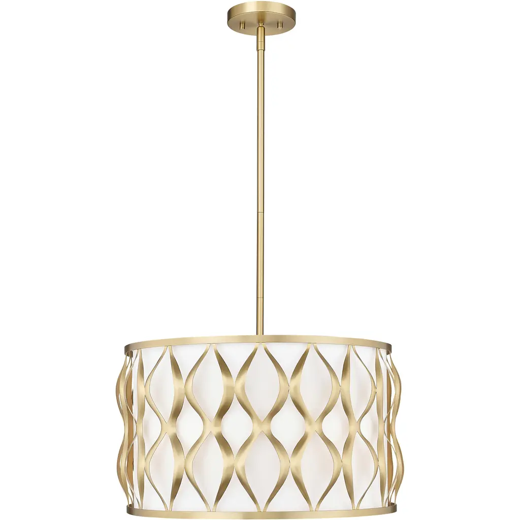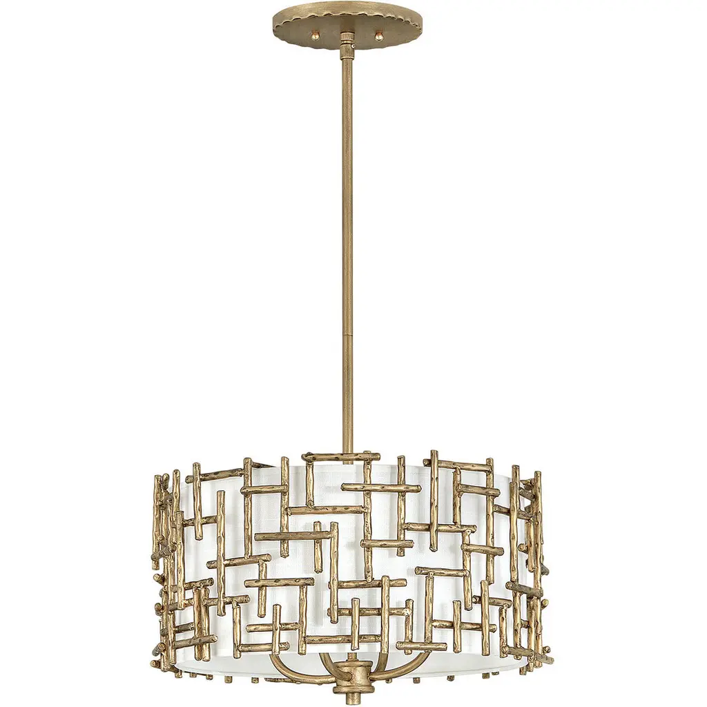 Farrah’s contemporary design is bold and sculptural, while achieving an optical airiness. The hand-hammered crosshatch bars gleam in a hand-applied Silver Leaf or Burnished Gold finish with artisanal detailing that carries through to the canopy detail. Set against a White Linen shade, Farrah creates a look of deconstructed; modern elegance.