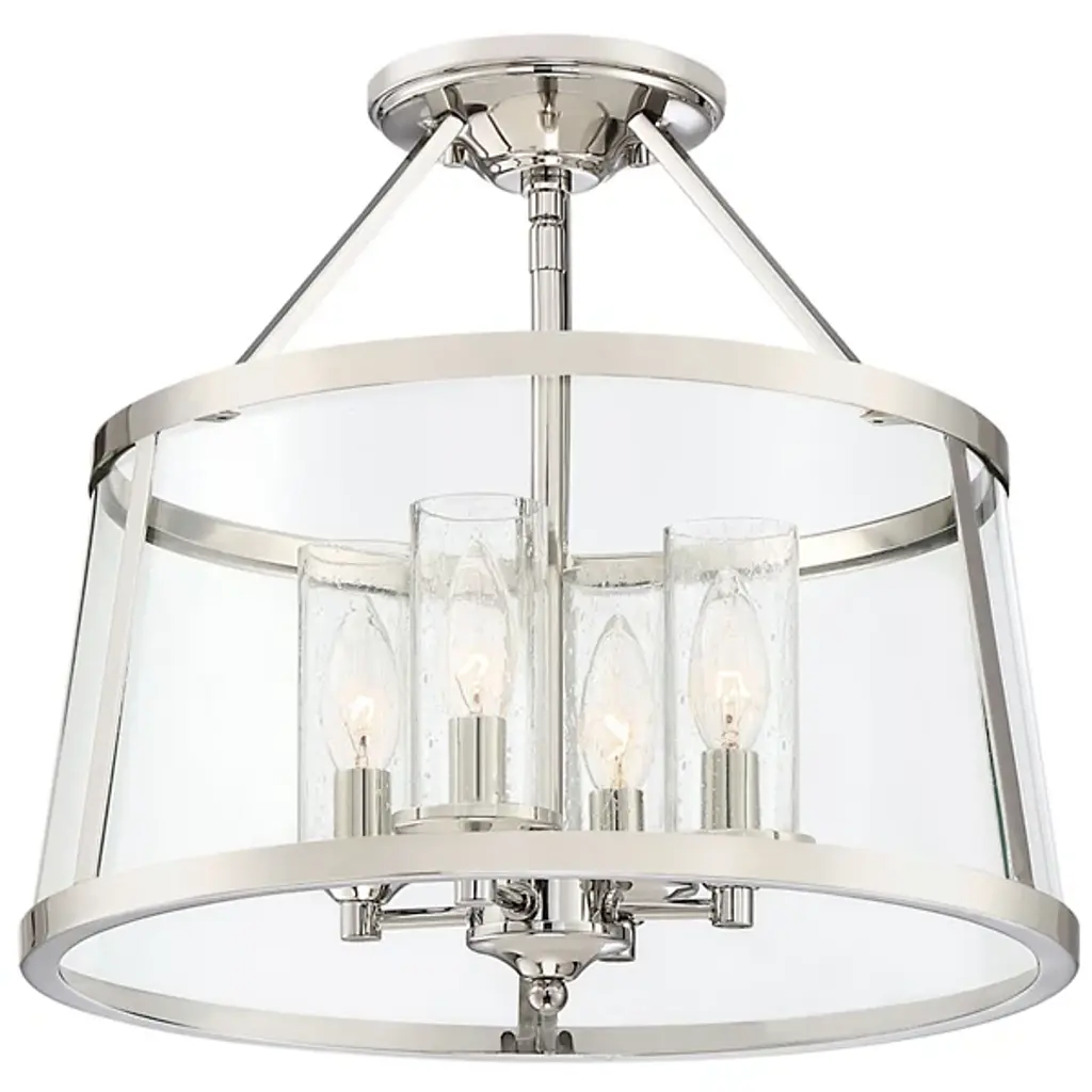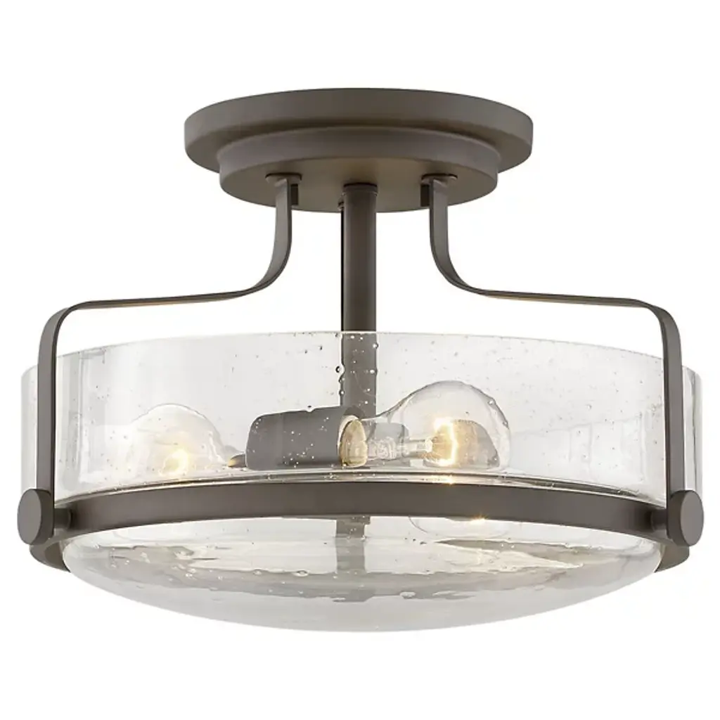 Subtlety with staying power. Featuring a simple ring and armatures, the Foyer Harper Semi Flushmount by Hinkley Lighting limits its hardware to only what's essential – all the better to show off its handsome seeded glass. This versatile semi-flush fixture makes a seamless complement for any décor, while its multiple lights provide ample lighting performance.