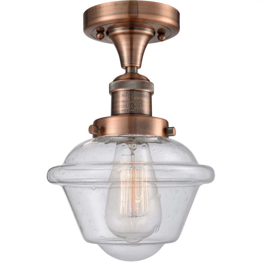 Franklin Restoration Beacon 1 Light 6 Inch Antique Copper Semi-Flush Mount Ceiling Light In Seedy Glass, Franklin Restoration