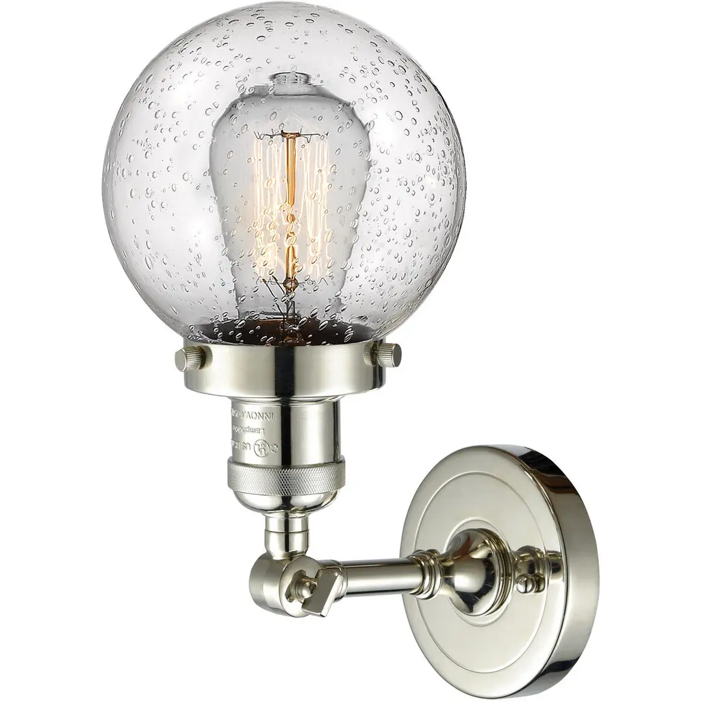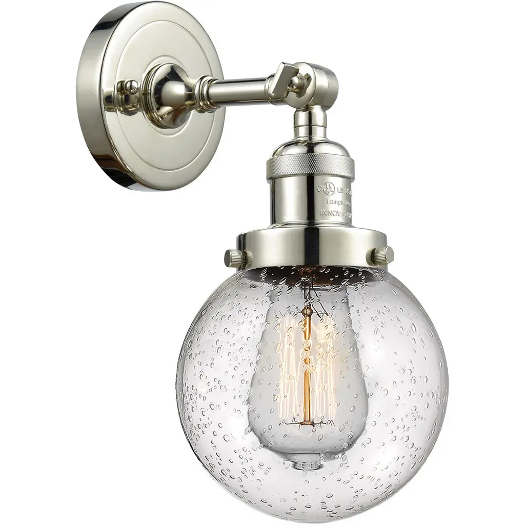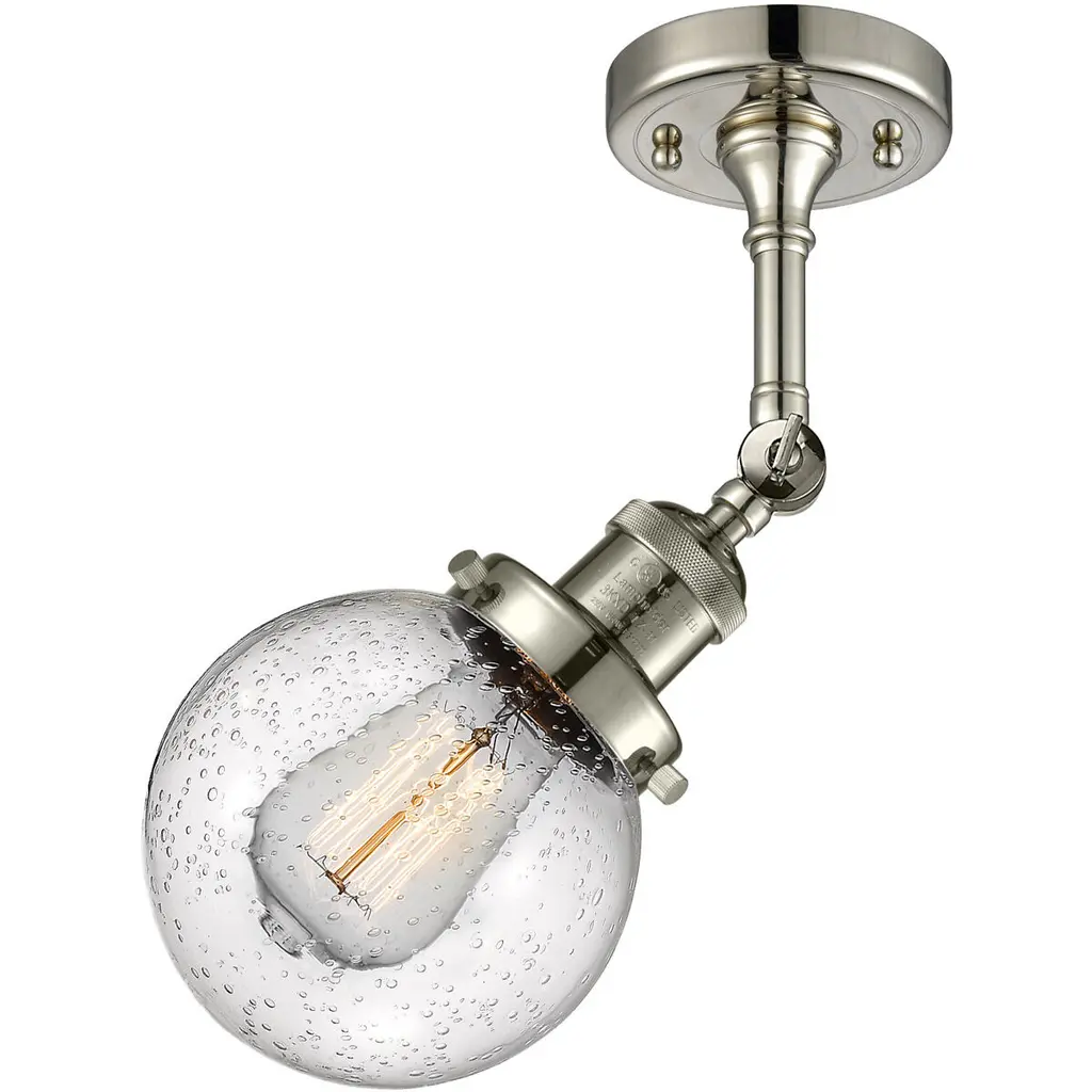 Franklin Restoration Beacon Led 6 Inch Polished Nickel Semi-Flush Mount Ceiling Light In Seedy Glass, Franklin Restoration
