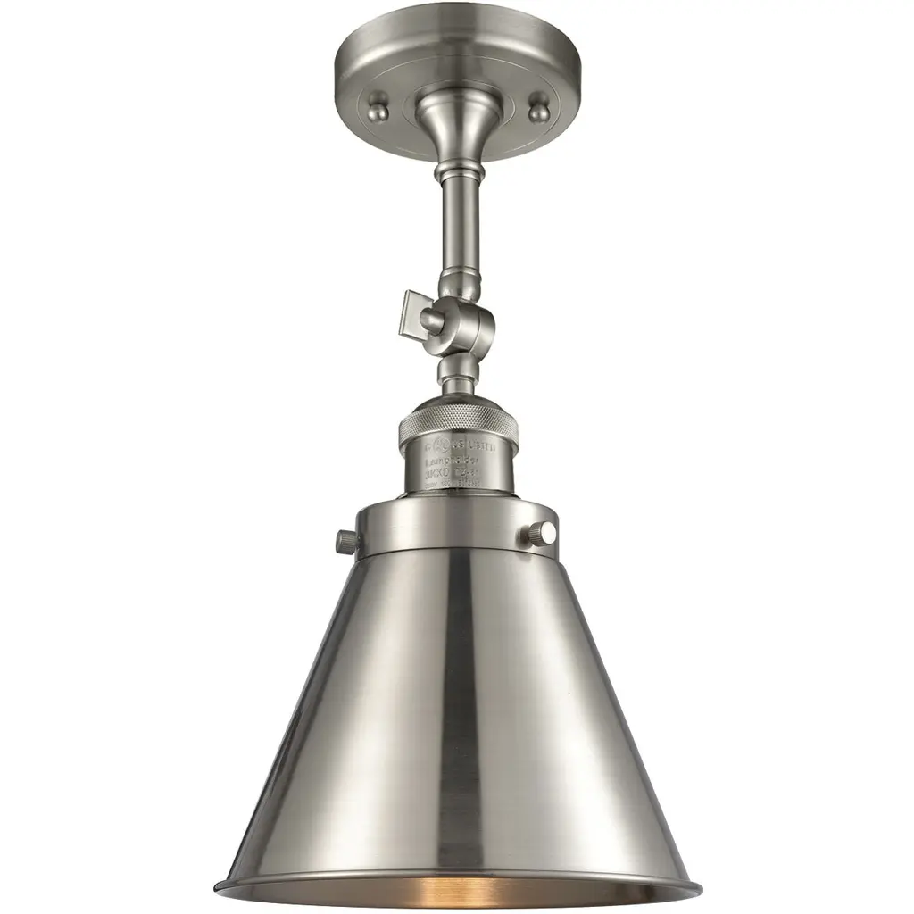 The Briarcliff 1 Light Semi-Flush Mount is part of the Franklin Restoration Collection. Solid Brass 180 Degree Adjustable Swivel with internal teeth that lock in at 5 degree intervals With Engraved Cast Cup