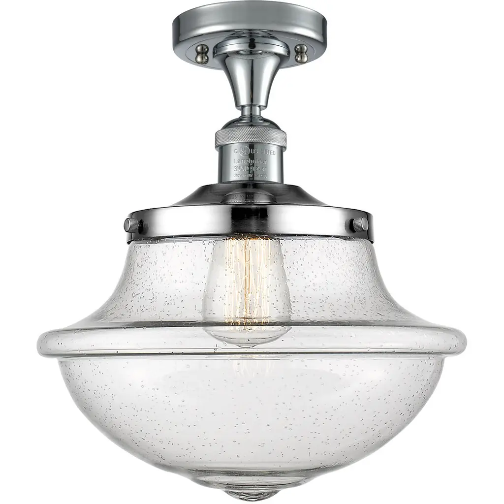 Franklin Restoration Canton 1 Light 6 Inch Polished Nickel Semi-Flush Mount Ceiling Light In Seedy Glass, Franklin Restoration