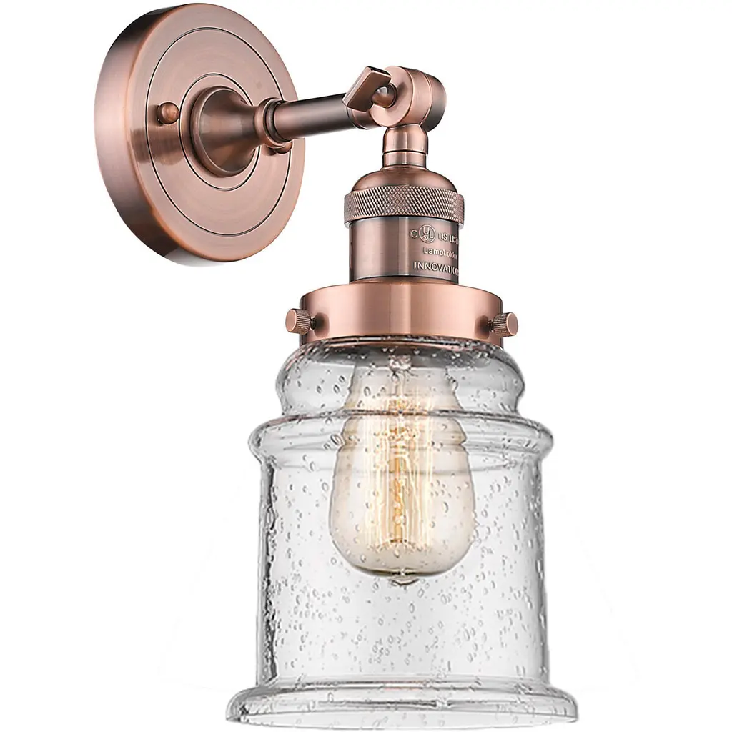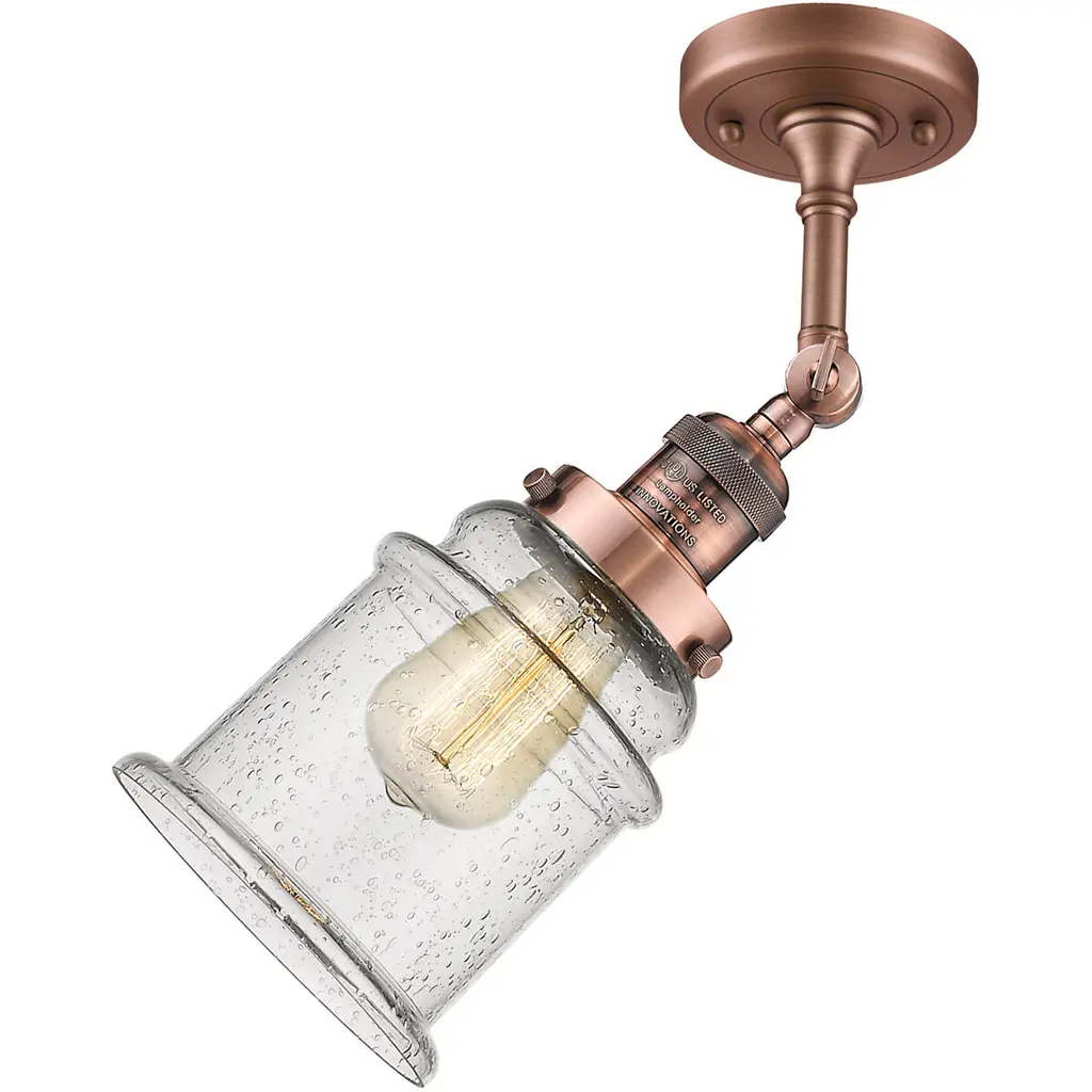 The Canton 1 Light Semi-Flush Mount is part of the Franklin Restoration Collection. Solid Brass 180 Degree Adjustable Swivel with internal teeth that lock in at 5 degree intervals With Engraved Cast Cup