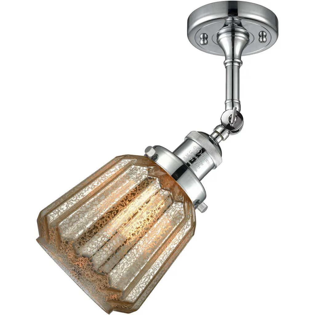 Franklin Restoration Chatham Led 6 Inch Polished Chrome Semi-Flush Mount Ceiling Light In Mercury Glass, Franklin Restoration