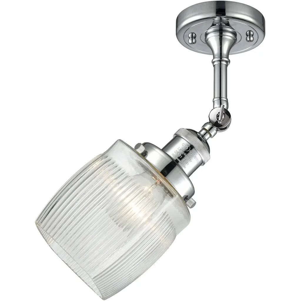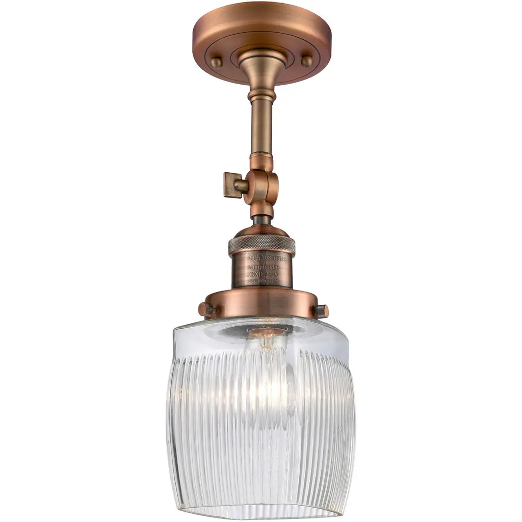 The Colton 1 Light Semi-Flush Mount is part of the Franklin Restoration Collection. Solid Brass 180 Degree Adjustable Swivel with internal teeth that lock in at 5 degree intervals With Engraved Cast Cup