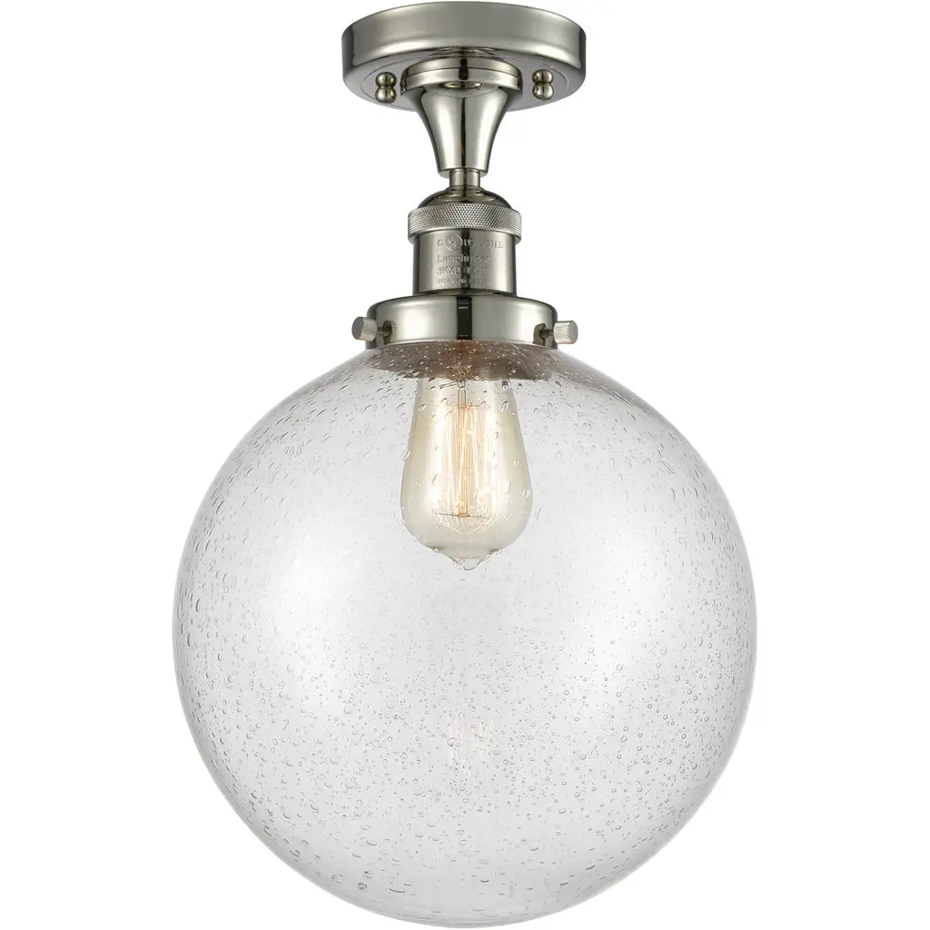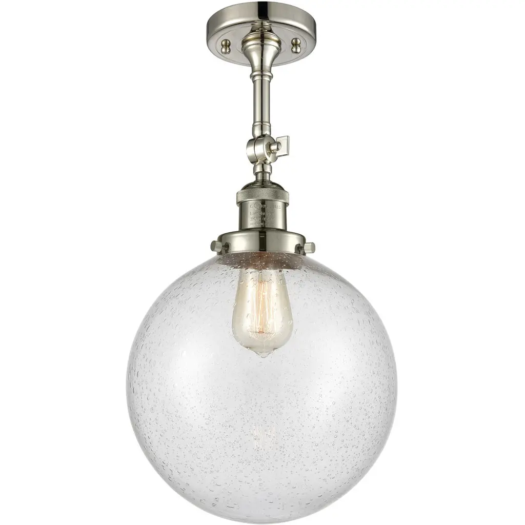 Franklin Restoration Hampden 1 Light 12.88 Inch Brushed Satin Nickel Semi-Flush Mount Ceiling Light In Seedy Glass
