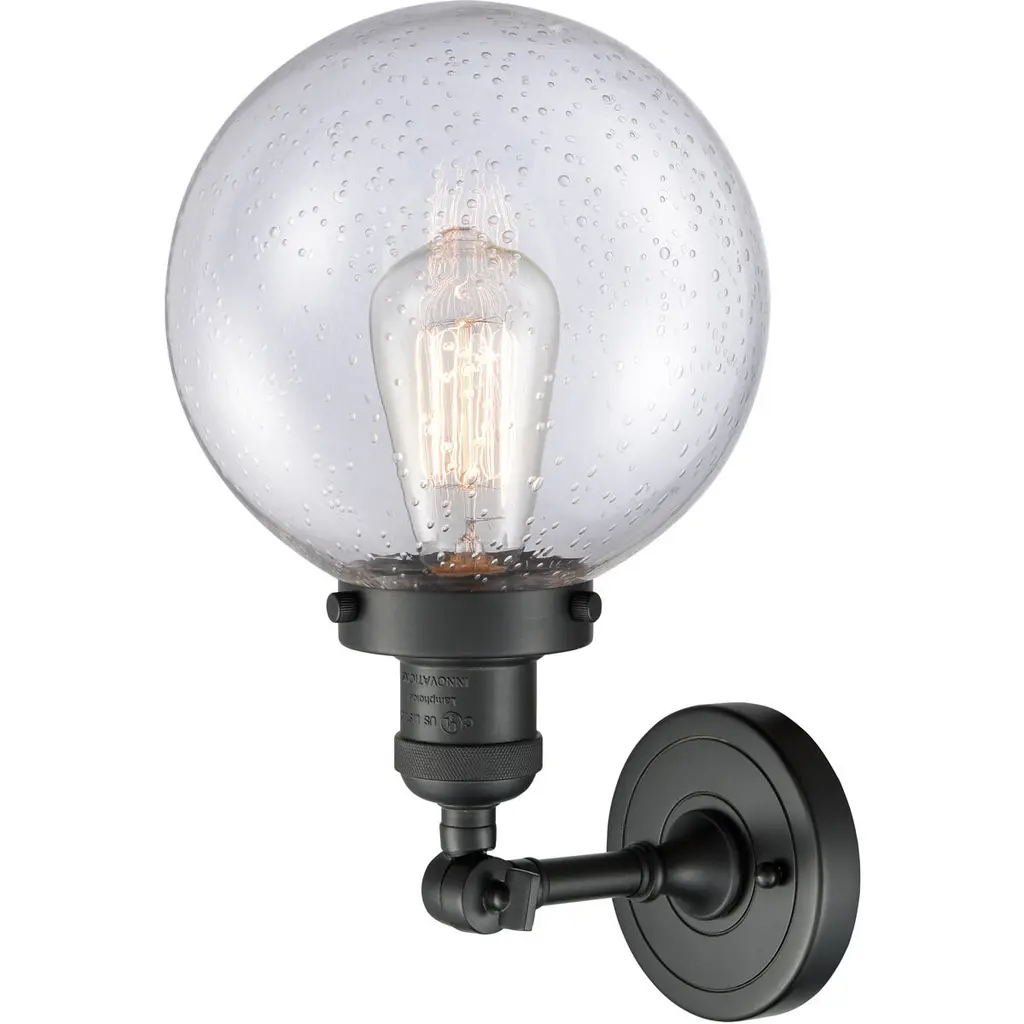 Franklin Restoration Large Beacon 1 Light 8 Inch Matte Black Semi-Flush Mount Ceiling Light In Seedy Glass, Franklin Restoration