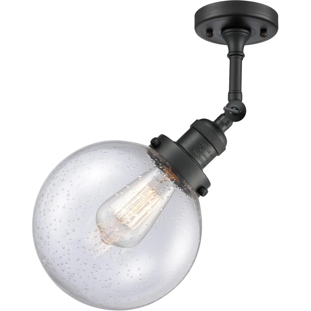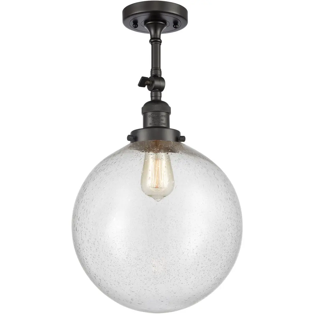 Franklin Restoration Large Beacon 1 Light 8 Inch Oil Rubbed Bronze Semi-Flush Mount Ceiling Light In Seedy Glass, Franklin Restoration