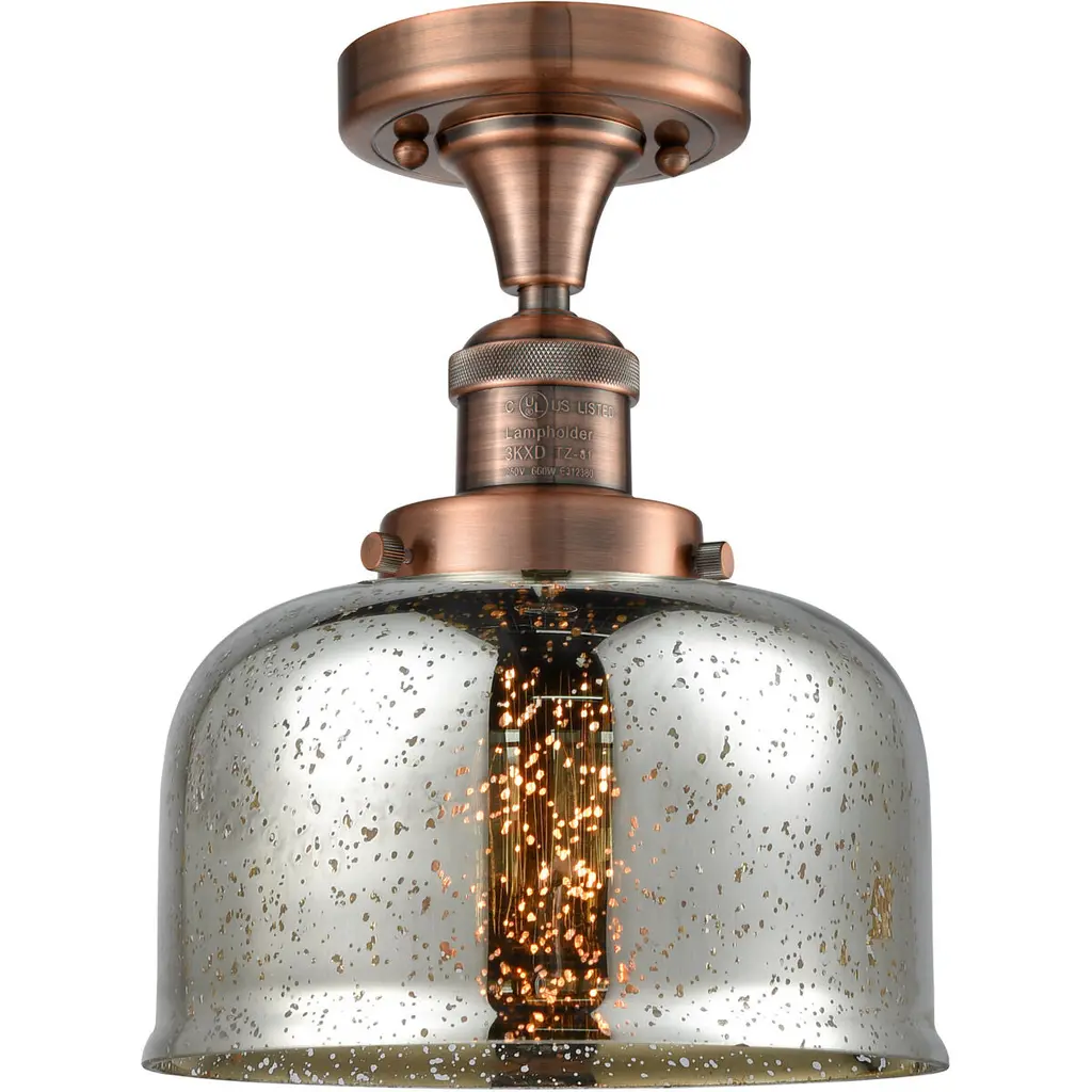 Franklin Restoration Large Bell 1 Light 8 Inch Antique Copper Semi-Flush Mount Ceiling Light In Silver Plated Mercury Glass, Franklin Restoration