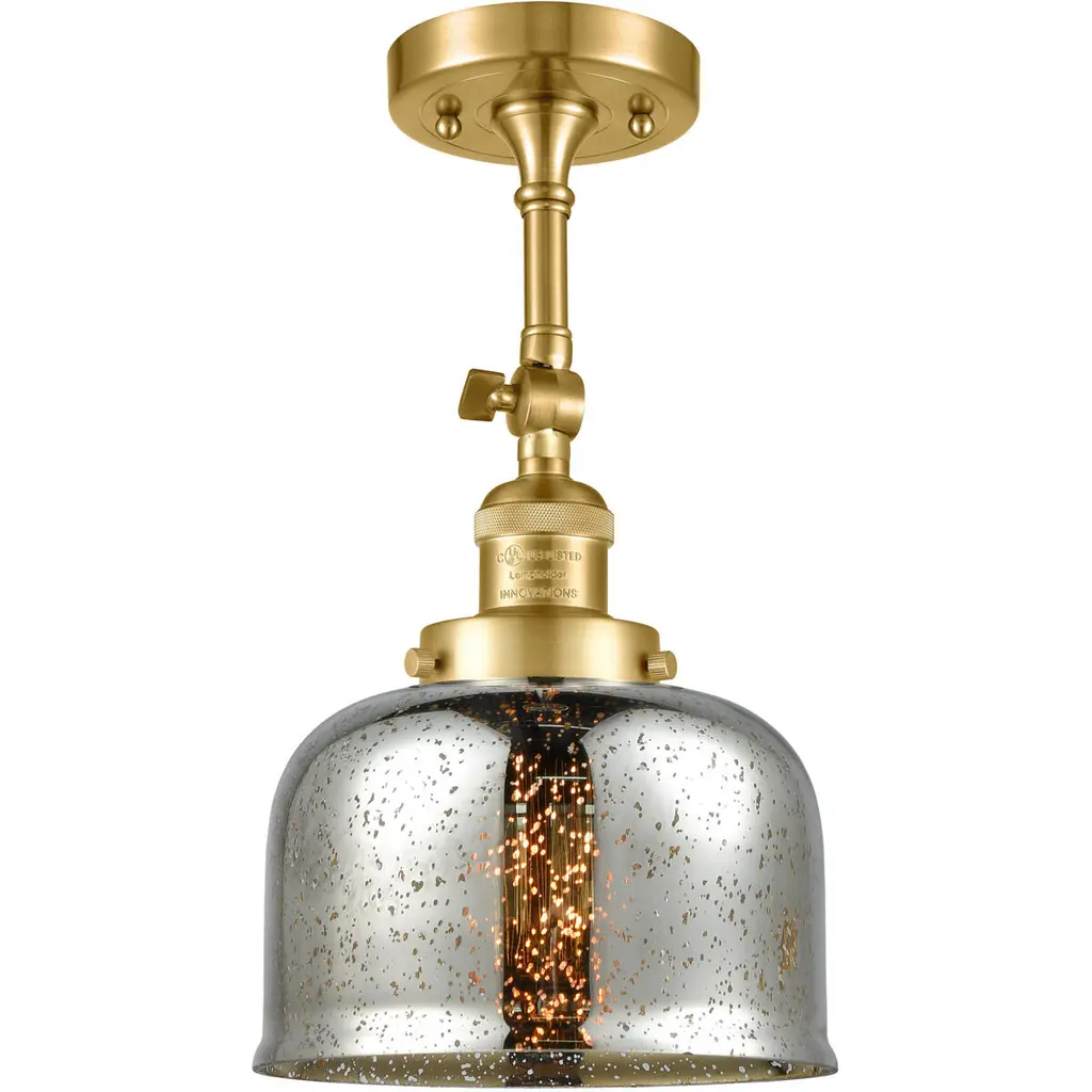 The Large Bell 1 Light Semi-Flush Mount is part of the Franklin Restoration Collection. Solid Brass 180 Degree Adjustable Swivel with internal teeth that lock in at 5 degree intervals With Engraved Cast Cup