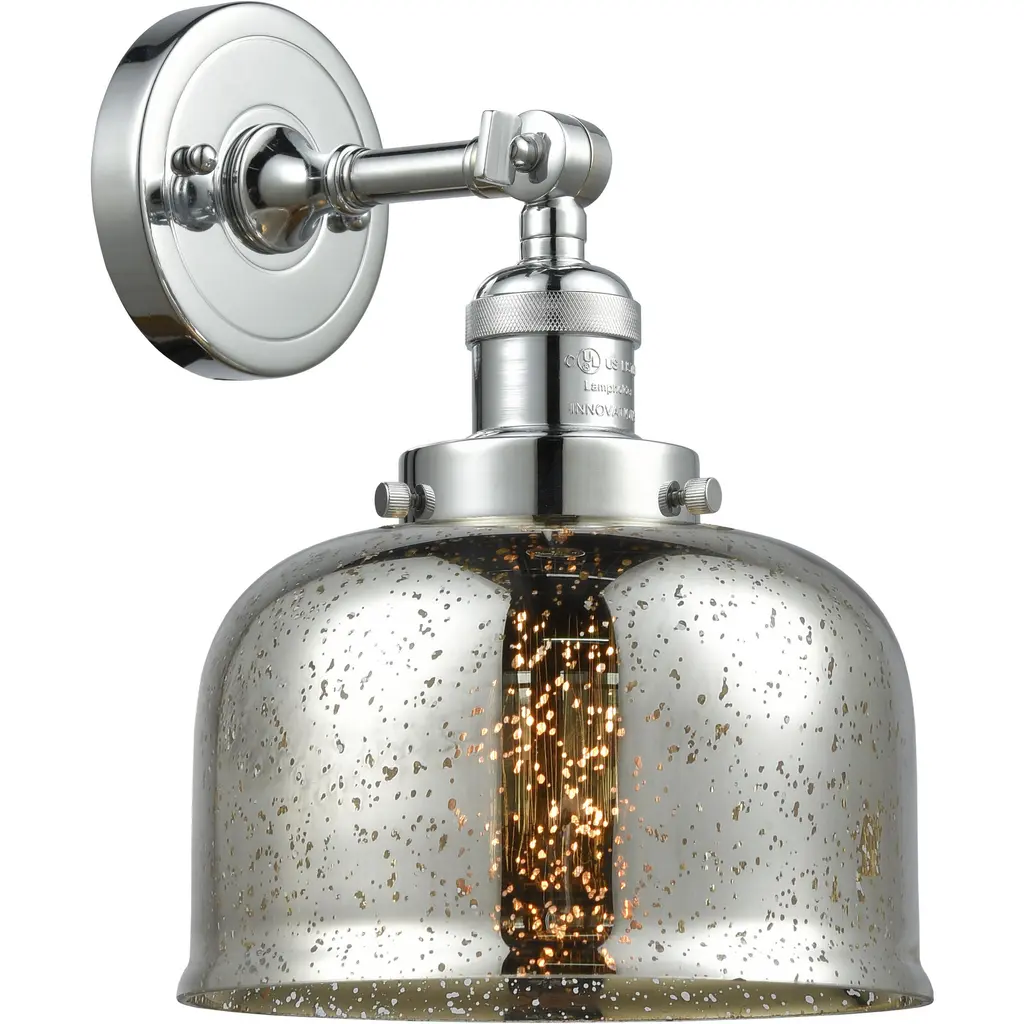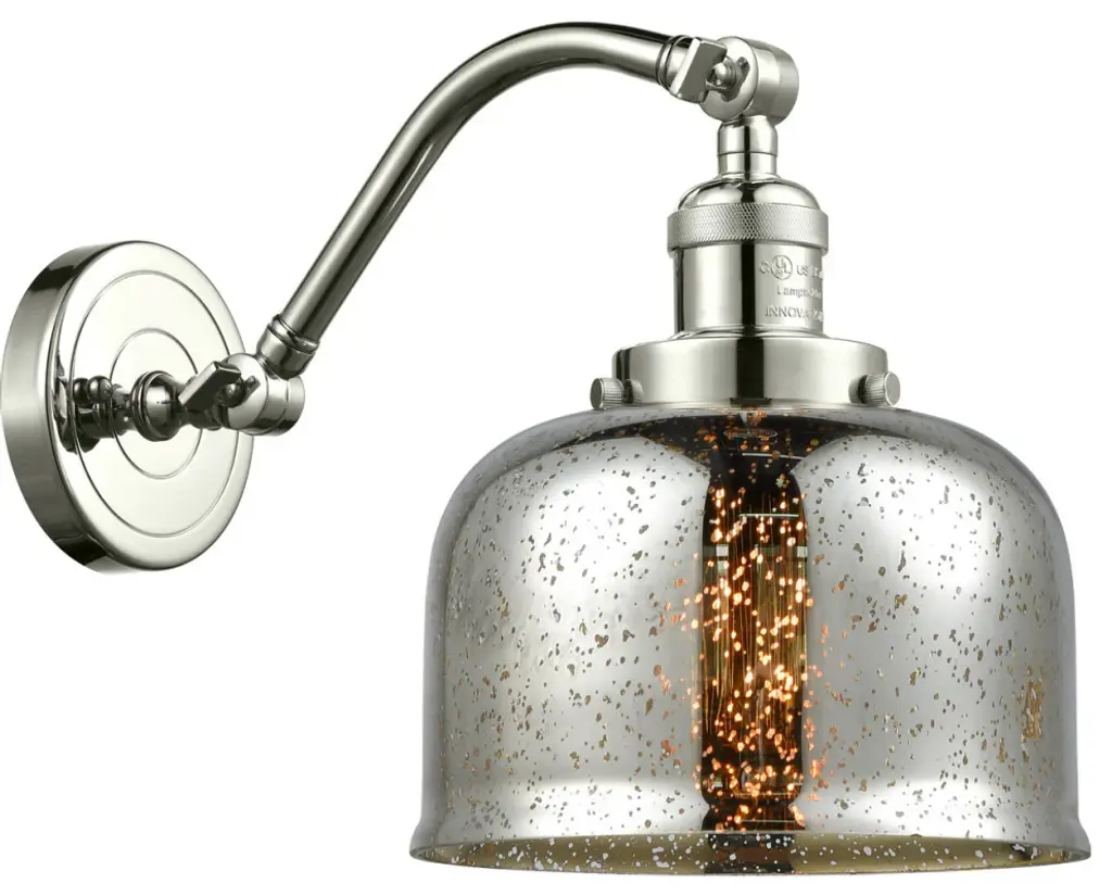 Franklin Restoration Large Bell 1 Light 8 Inch Polished Nickel Semi-Flush Mount Ceiling Light In Silver Plated Mercury Glass, Franklin Restoration
