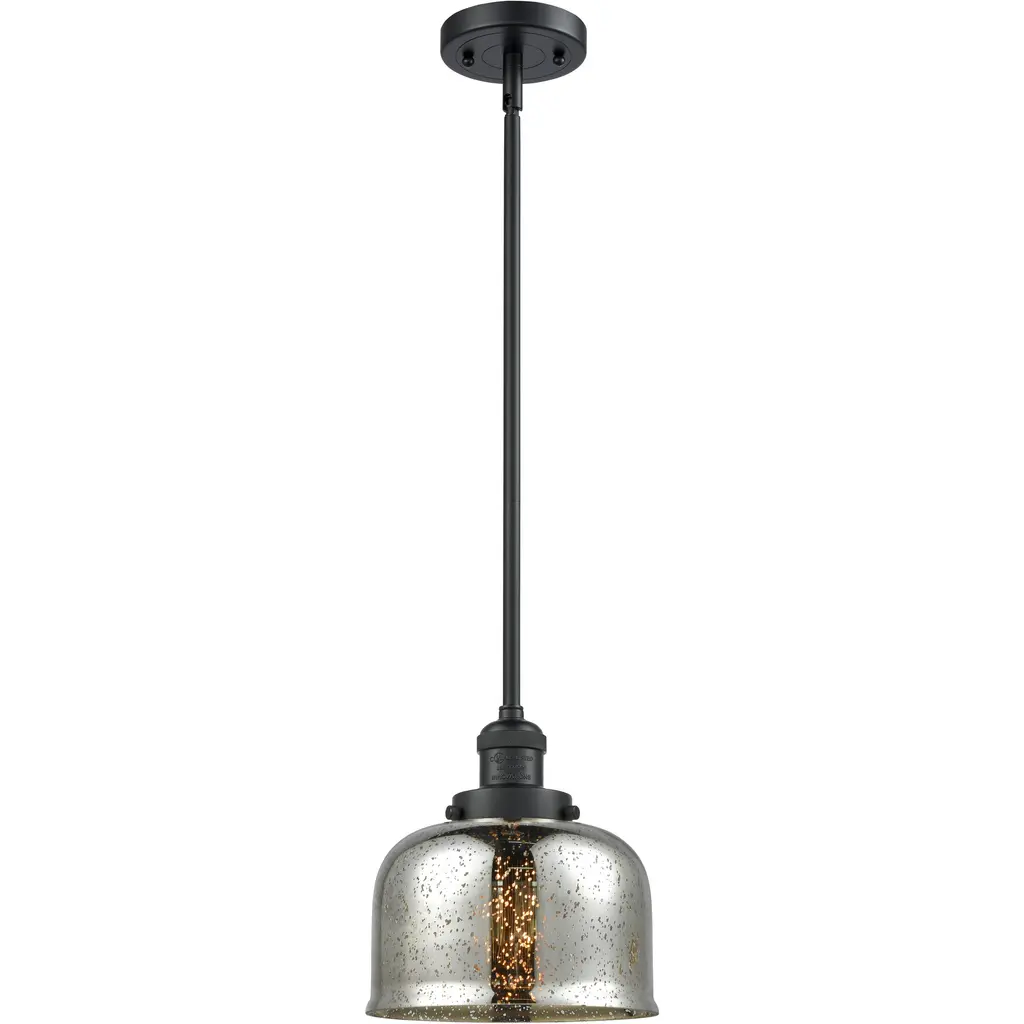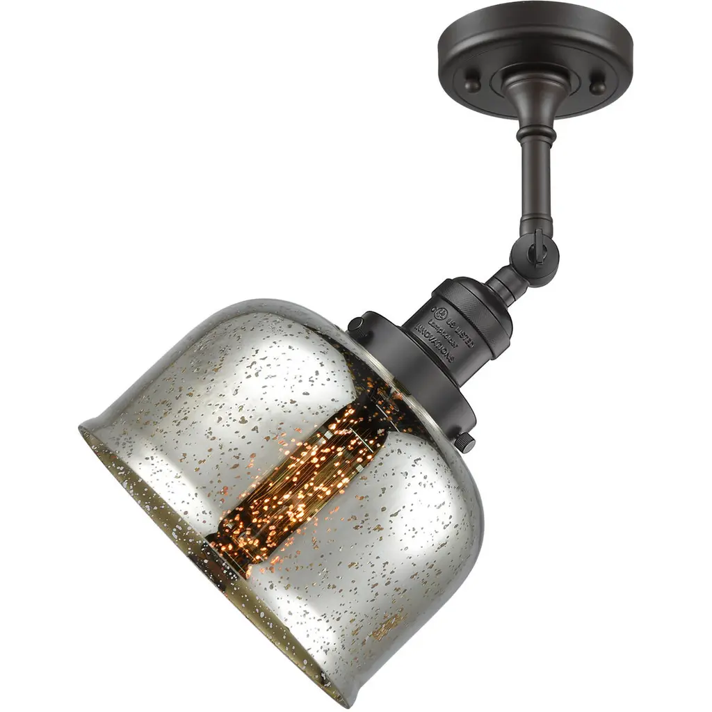Franklin Restoration Large Bell Led 8 Inch Matte Black Semi-Flush Mount Ceiling Light In Silver Plated Mercury Glass, Franklin Restoration
