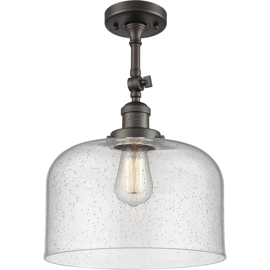 The Large Bell 1 Light Semi-Flush Mount is part of the Franklin Restoration Collection. Solid Brass 180 Degree Adjustable Swivel with internal teeth that lock in at 5 degree intervals With Engraved Cast Cup