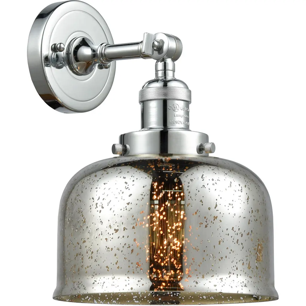 Franklin Restoration Large Bell Led 8 Inch Polished Chrome Semi-Flush Mount Ceiling Light In Silver Plated Mercury Glass, Franklin Restoration