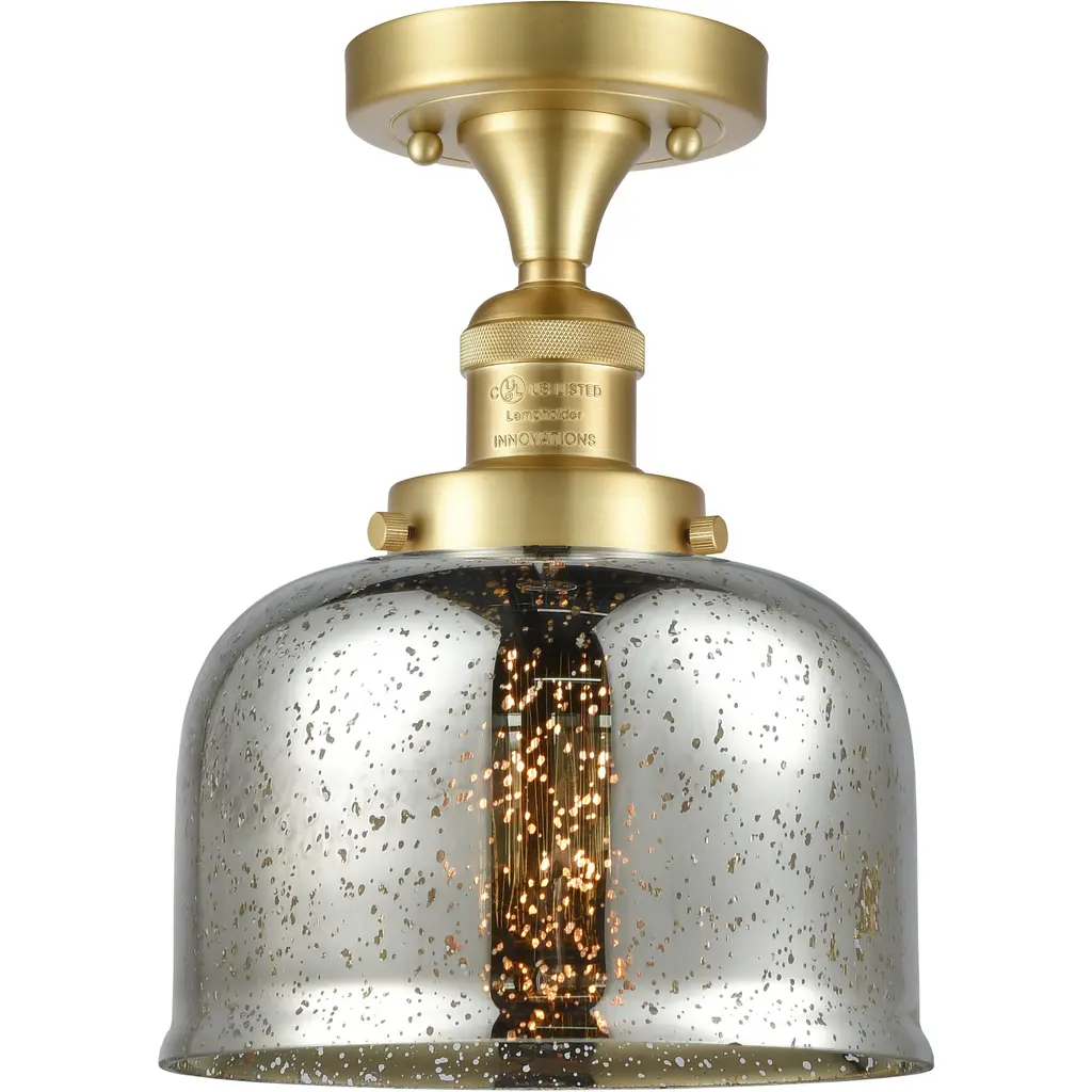 Franklin Restoration Large Bell Led 8 Inch Satin Gold Semi-Flush Mount Ceiling Light In Silver Plated Mercury Glass, Franklin Restoration