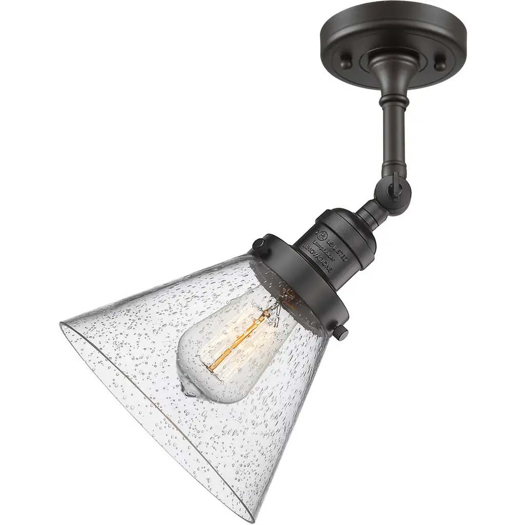 Franklin Restoration Large Cone 1 Light 8 Inch Oil Rubbed Bronze Semi-Flush Mount Ceiling Light In Seedy Glass, Franklin Restoration