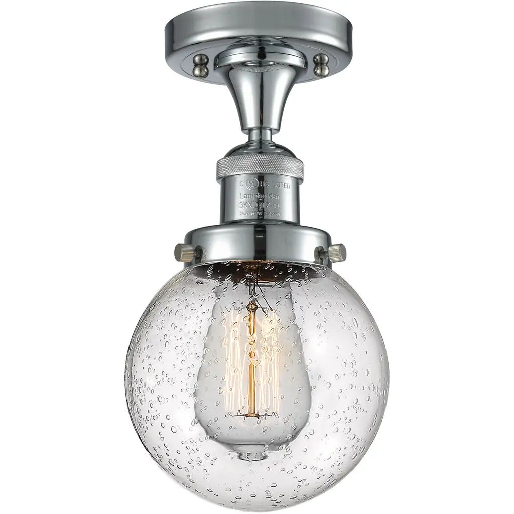 Franklin Restoration Large Cone 1 Light 8 Inch Polished Chrome Semi-Flush Mount Ceiling Light In Seedy Glass, Franklin Restoration