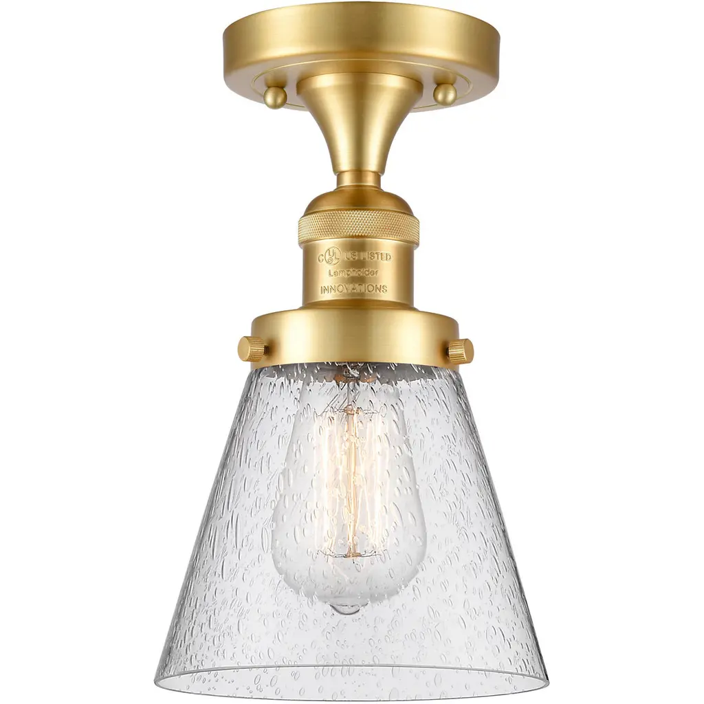 Franklin Restoration Large Cone 1 Light 8 Inch Satin Gold Semi-Flush Mount Ceiling Light In Seedy Glass, Franklin Restoration