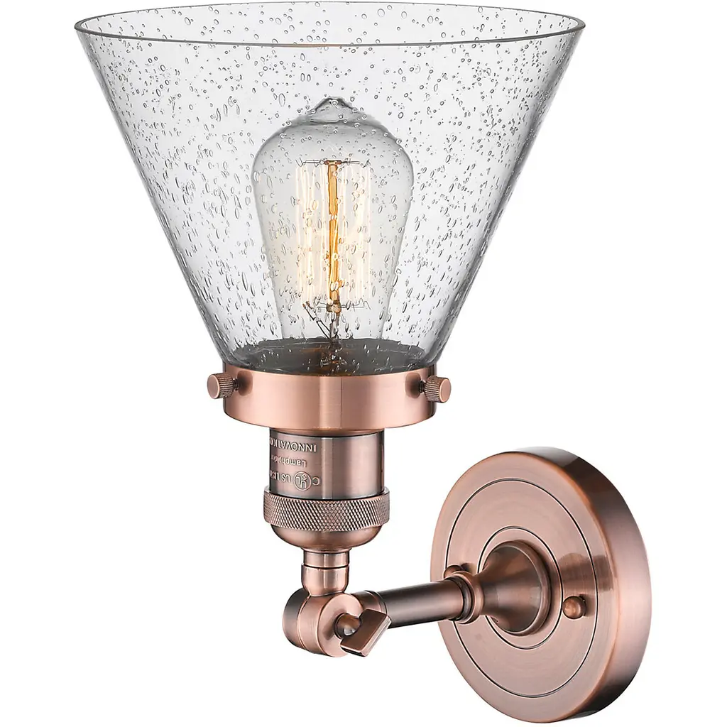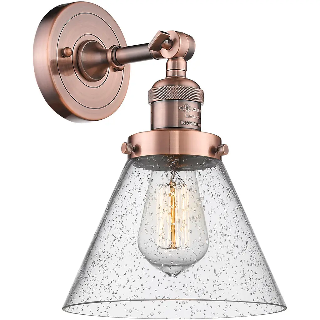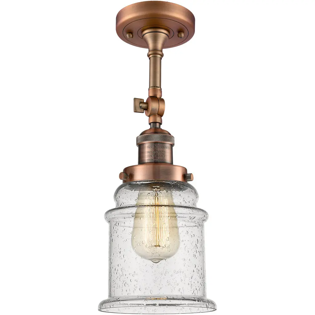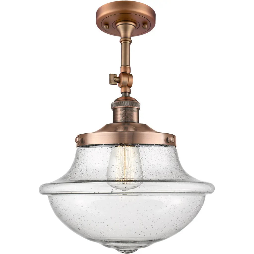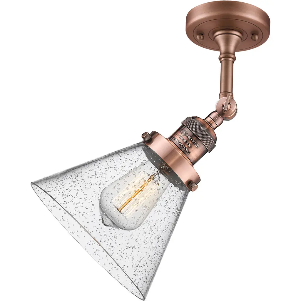 Franklin Restoration Large Cone Led 8 Inch Antique Copper Semi-Flush Mount Ceiling Light In Seedy Glass, Franklin Restoration