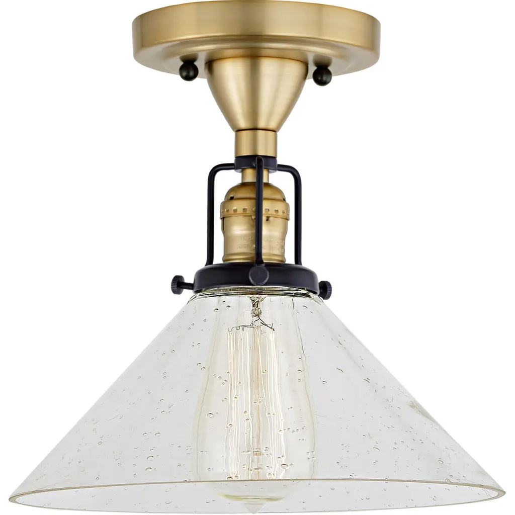 The Large Cone 1 Light Semi-Flush Mount is part of the Franklin Restoration Collection. Solid Brass 180 Degree Adjustable Swivel with internal teeth that lock in at 5 degree intervals With Engraved Cast Cup