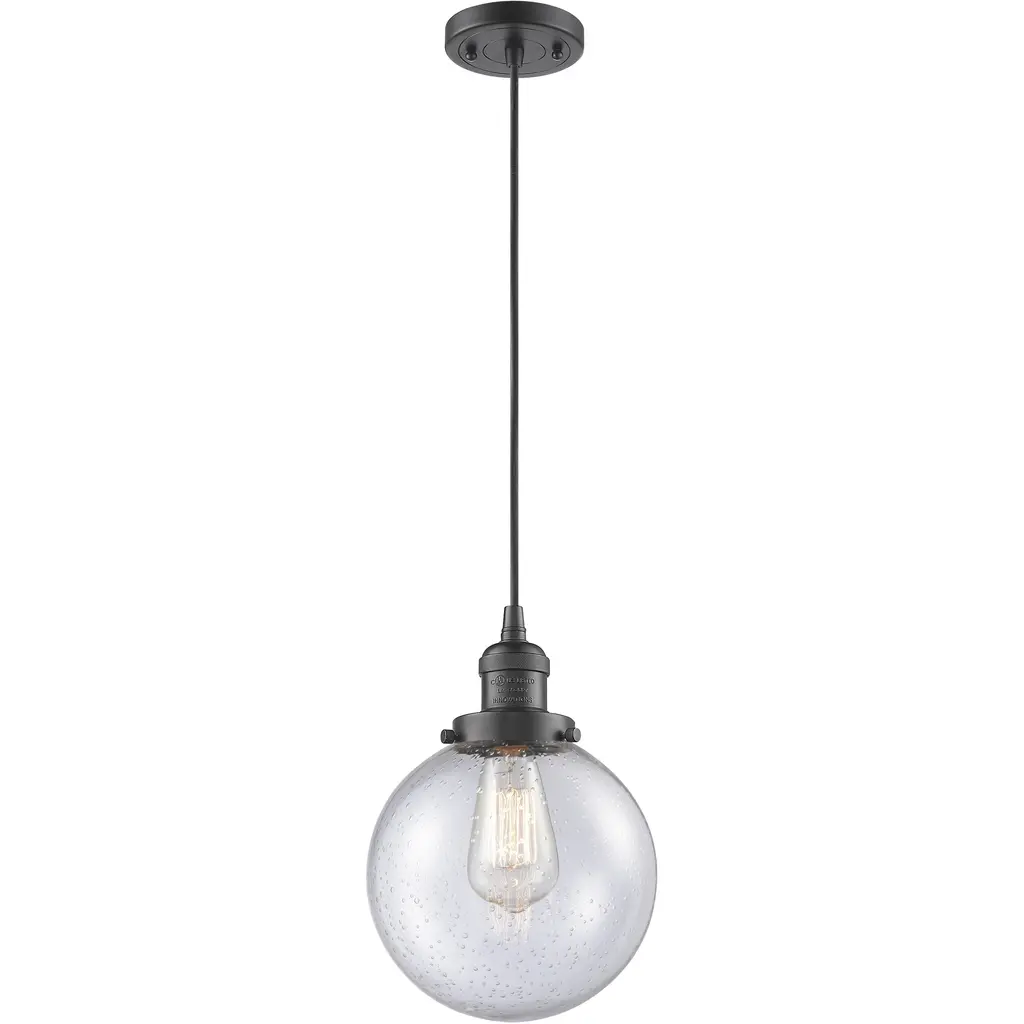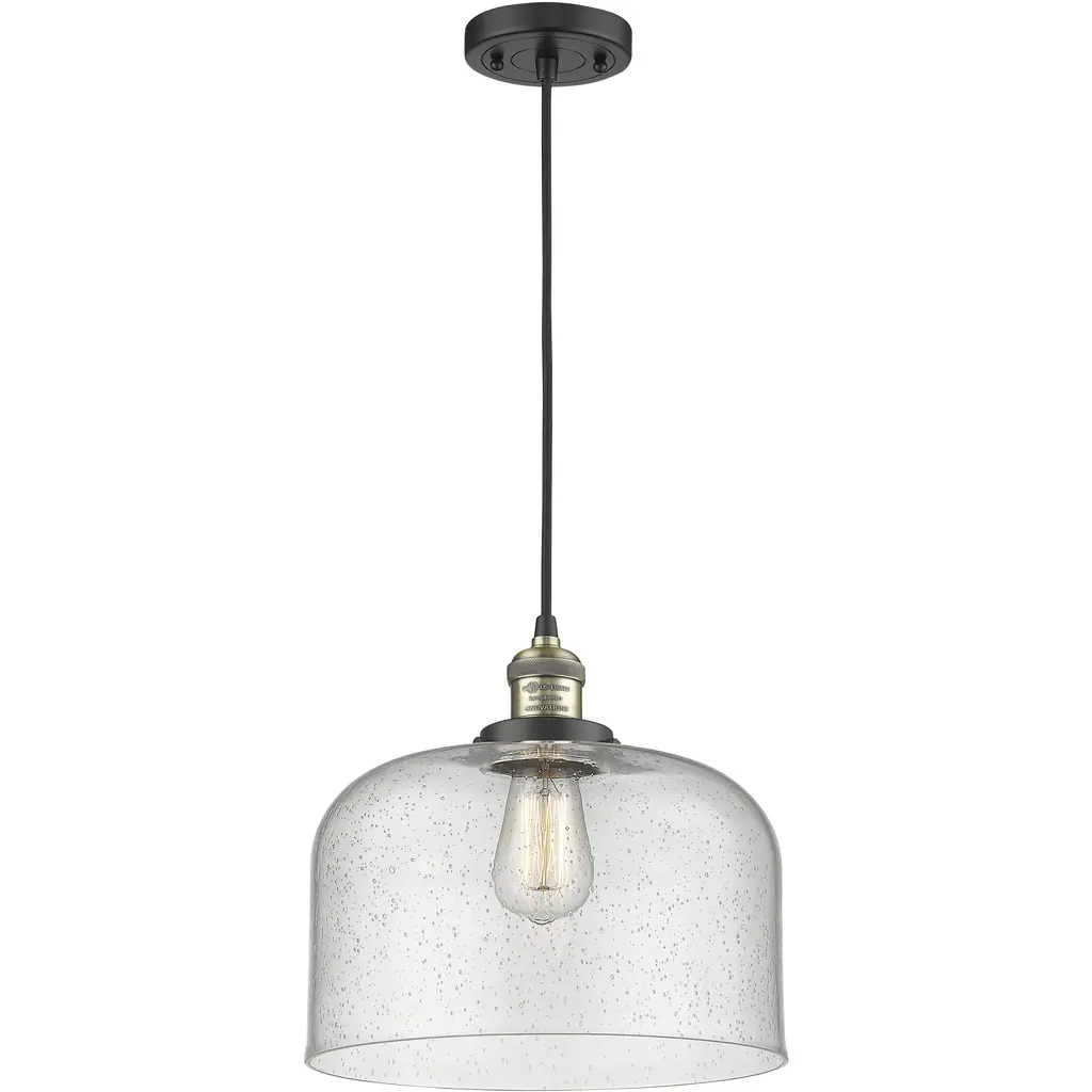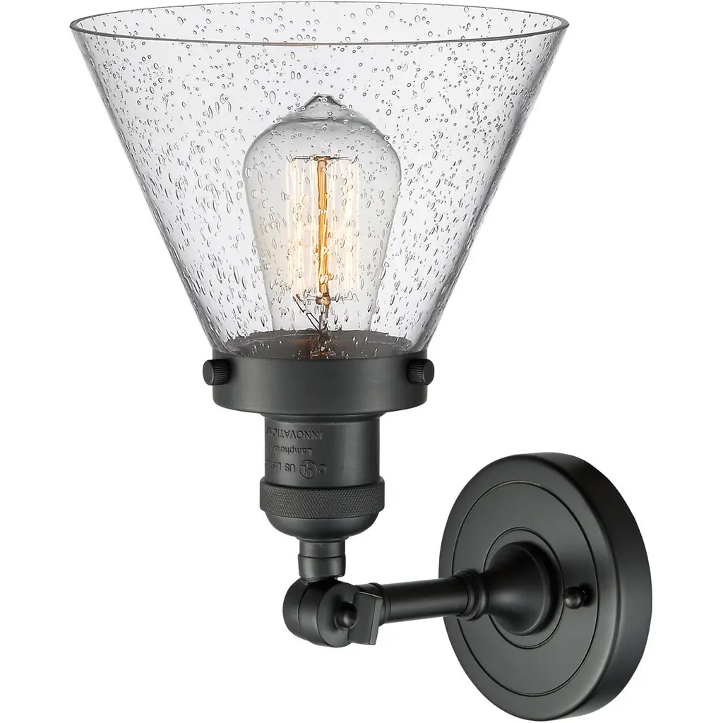 Franklin Restoration Large Cone Led 8 Inch Matte Black Semi-Flush Mount Ceiling Light In Seedy Glass, Franklin Restoration