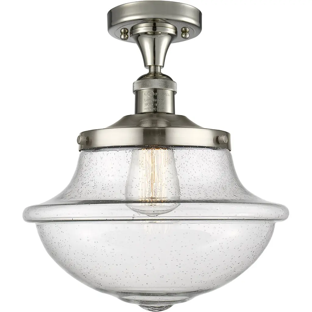 The Large Oxford 1 Light Semi-Flush Mount is part of the Franklin Restoration Collection. Solid Brass 180 Degree Adjustable Swivel with internal teeth that lock in at 5 degree intervals With Engraved Cast Cup