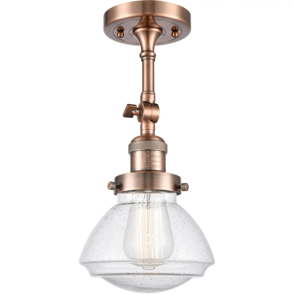 Franklin Restoration Olean 1 Light 7 Inch Antique Copper Semi-Flush Mount Ceiling Light In Seedy Glass, Franklin Restoration