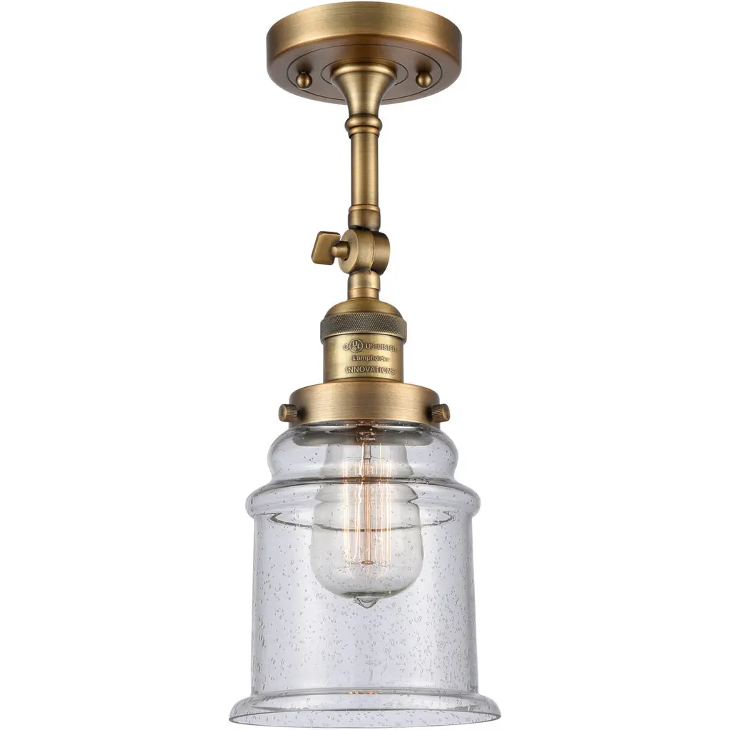 The Olean 1 Light Semi-Flush Mount is part of the Franklin Restoration Collection. Solid Brass 180 Degree Adjustable Swivel with internal teeth that lock in at 5 degree intervals With Engraved Cast Cup