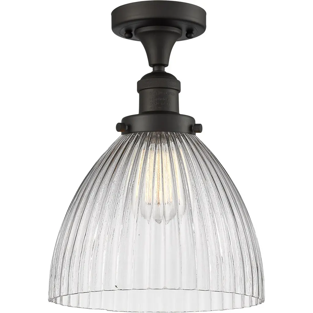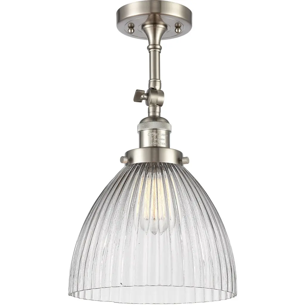 The Seneca Falls 1 Light Semi-Flush Mount is part of the Franklin Restoration Collection. Solid Brass 180 Degree Adjustable Swivel with internal teeth that lock in at 5 degree intervals With Engraved Cast Cup