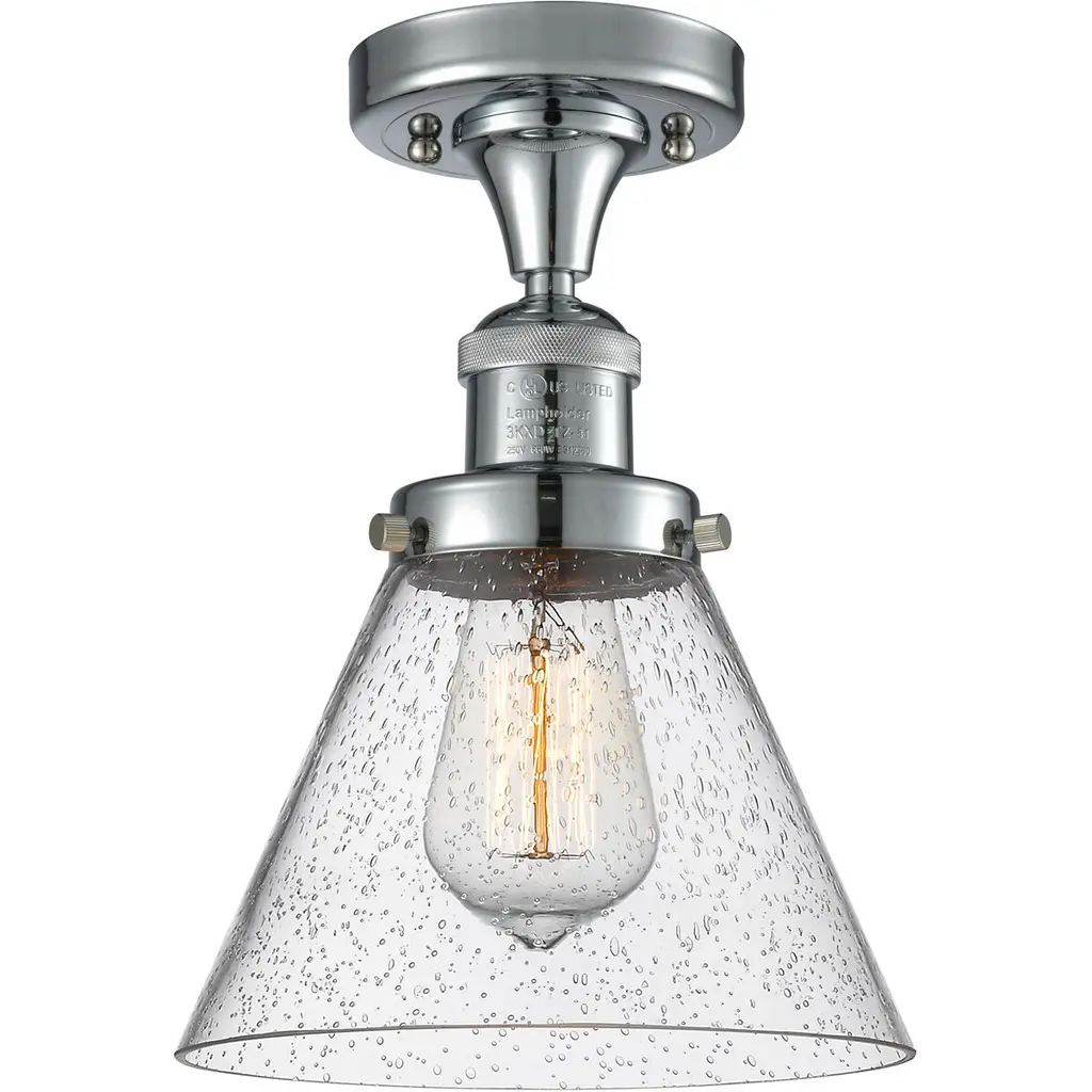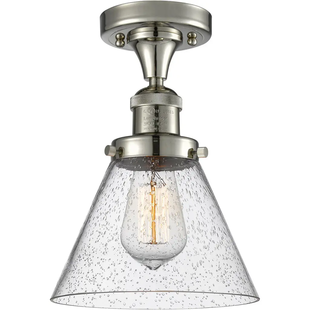 Franklin Restoration Small Bell 1 Light 5 Inch Polished Nickel Semi-Flush Mount Ceiling Light In Seedy Glass, Franklin Restoration