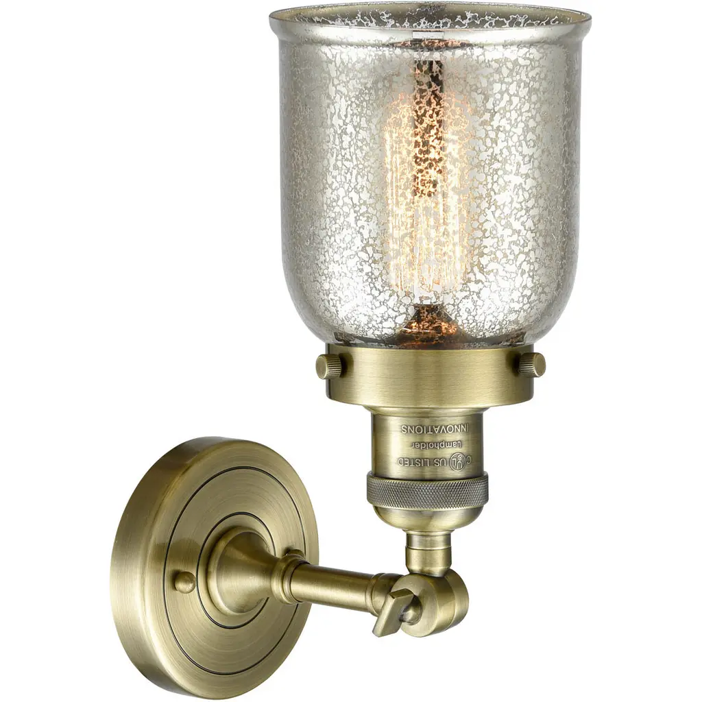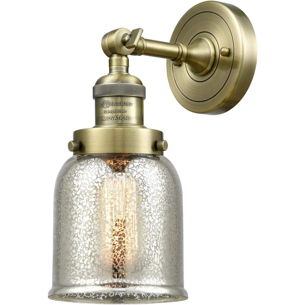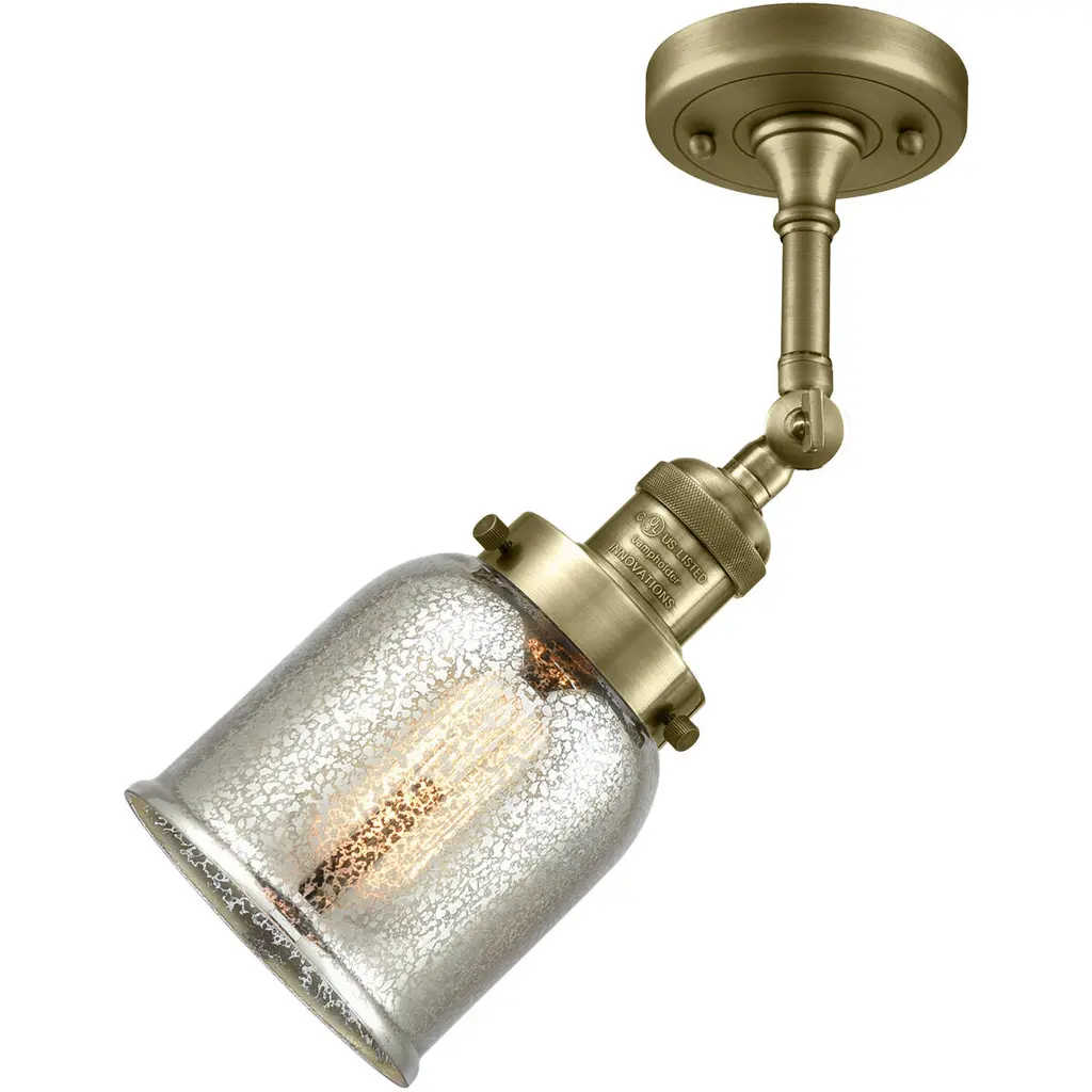 Franklin Restoration Small Bell Led 5 Inch Antique Brass Semi-Flush Mount Ceiling Light In Silver Plated Mercury Glass, Franklin Restoration
