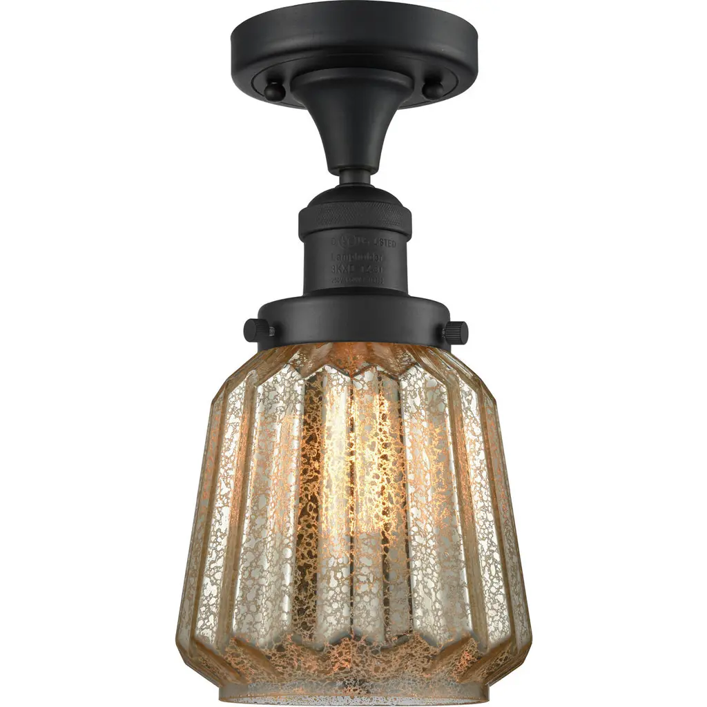 Franklin Restoration Small Bell Led 5 Inch Matte Black Semi-Flush Mount Ceiling Light In Silver Plated Mercury Glass, Franklin Restoration