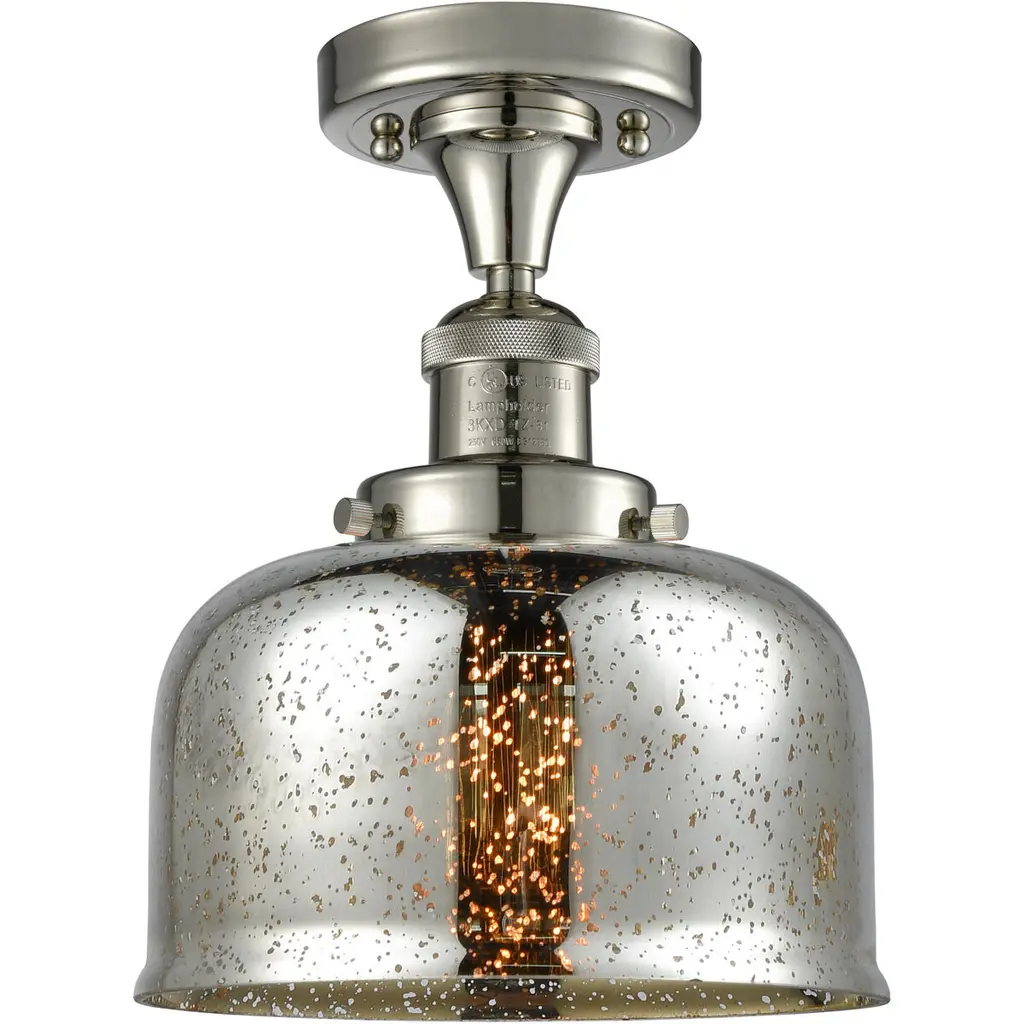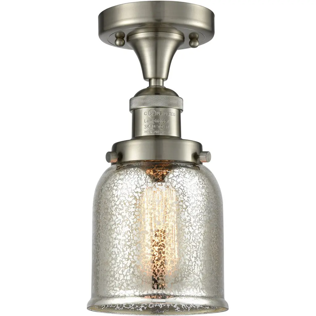 Franklin Restoration Small Bell Led 5 Inch Polished Chrome Semi-Flush Mount Ceiling Light In Silver Plated Mercury Glass, Franklin Restoration