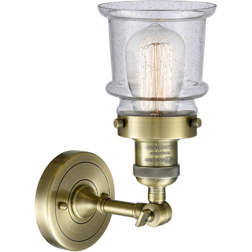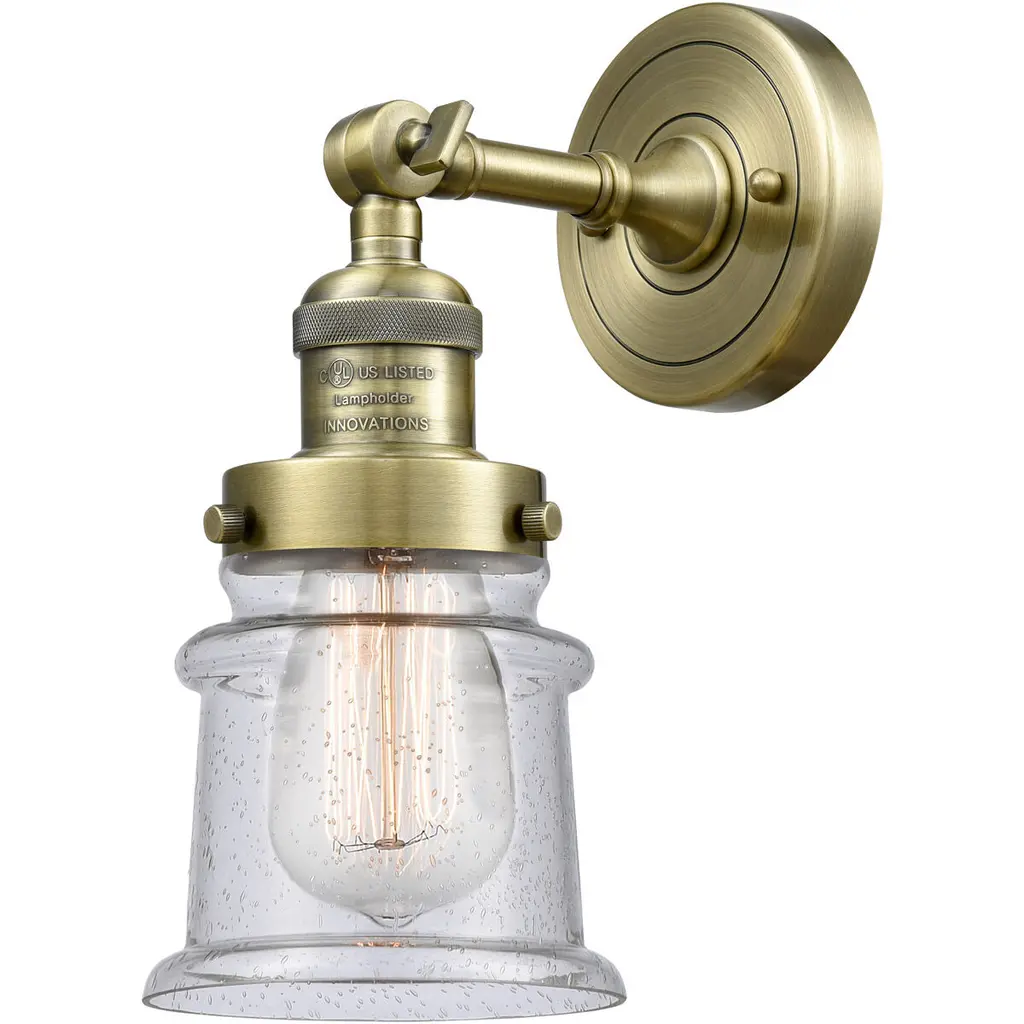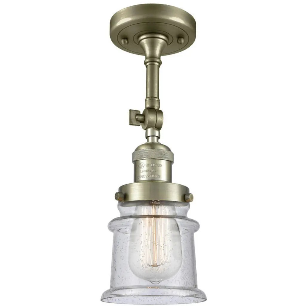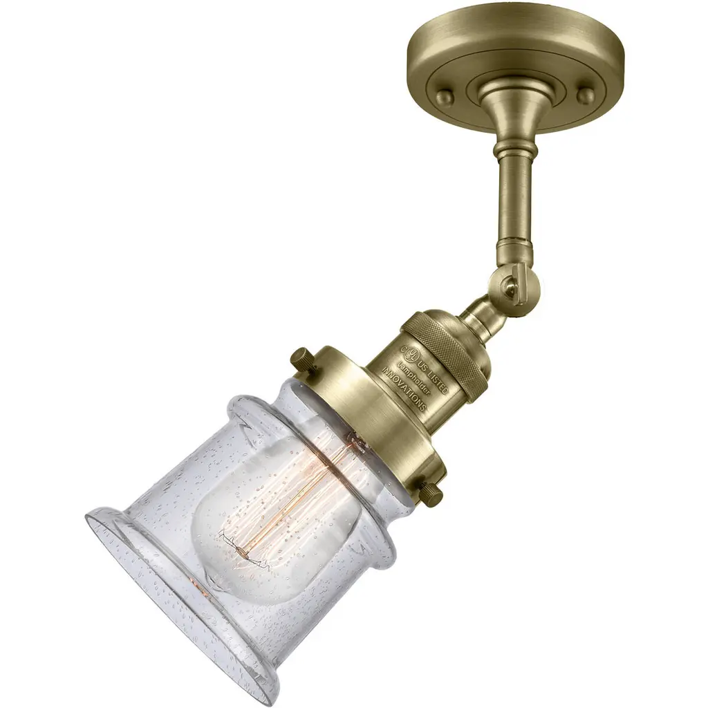 The Small Canton 1 Light Semi-Flush Mount is part of the Franklin Restoration Collection. Solid Brass 180 Degree Adjustable Swivel with internal teeth that lock in at 5 degree intervals With Engraved Cast Cup